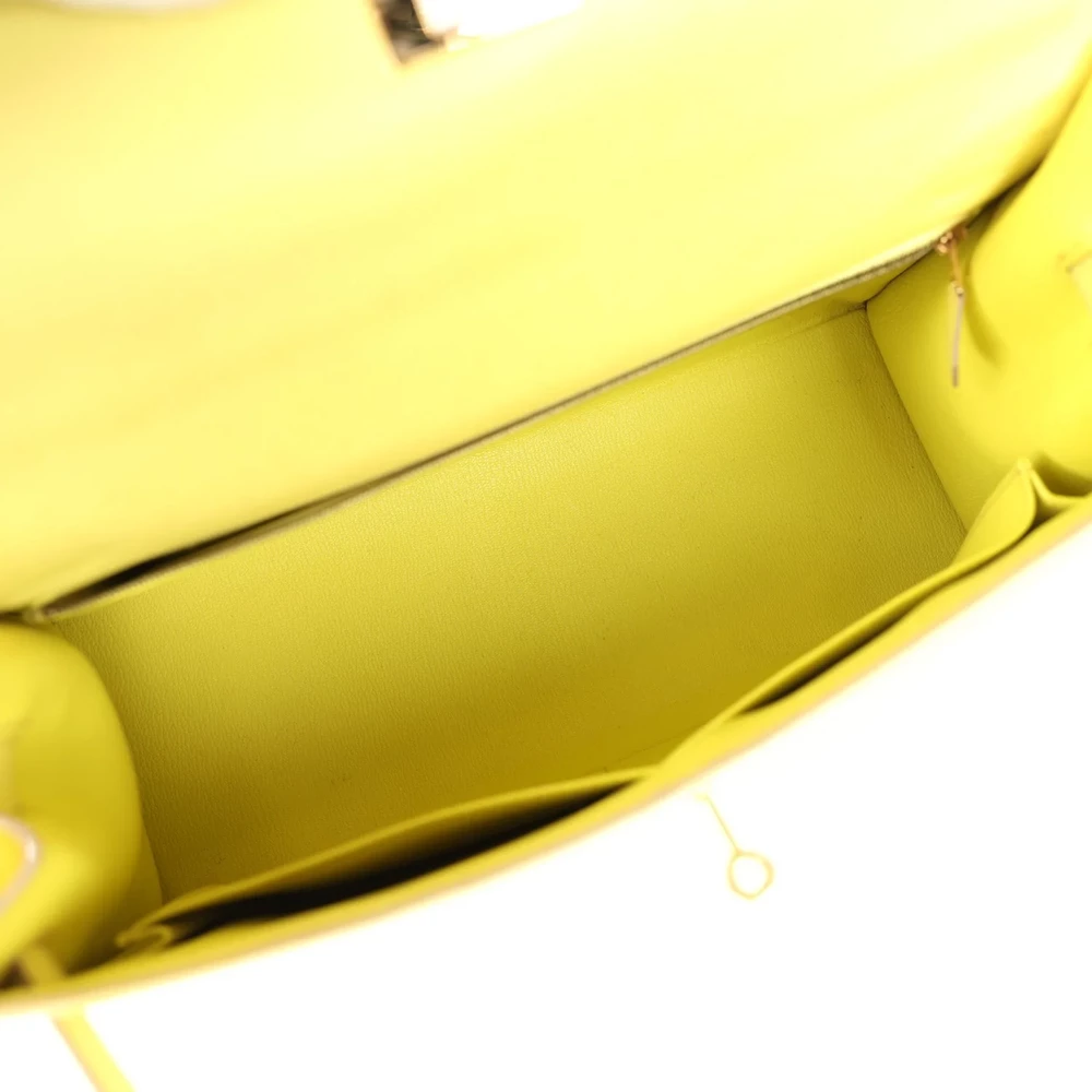 This Hermès Kelly Sellier 35 in Soufre is a statement of luxury and practicality. Crafted from Epsom leather, it features a spacious design. The Gold hardware adds a touch of opulence. Its bright yellow hue is perfect for adding a pop of color to any ensemble. The structured silhouette ensures elegance. Ideal for those who value both style and functionality. This bag is a true Hermès masterpiece.