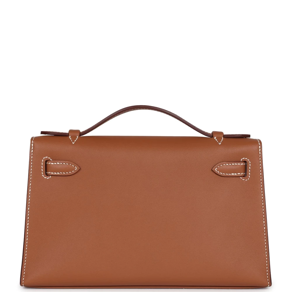 This Hermès Kelly Pochette in Gold is a chic and modern choice. Made from supple Swift leather, it features a compact design. The Gold hardware adds a touch of elegance. Its vibrant gold hue is perfect for adding a pop of luxury to your wardrobe. The interior is designed for essentials, making it both stylish and practical. A must-have for any Hermès collector. This bag is a true statement piece.