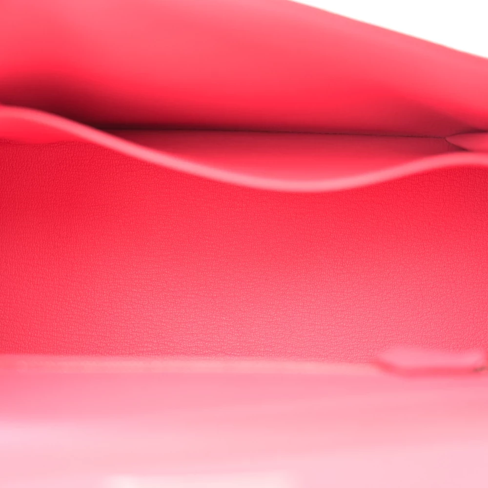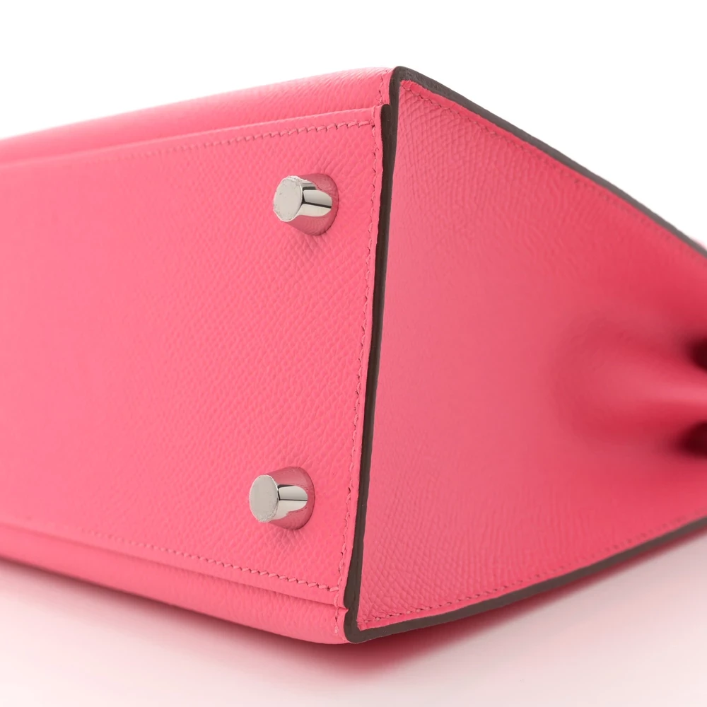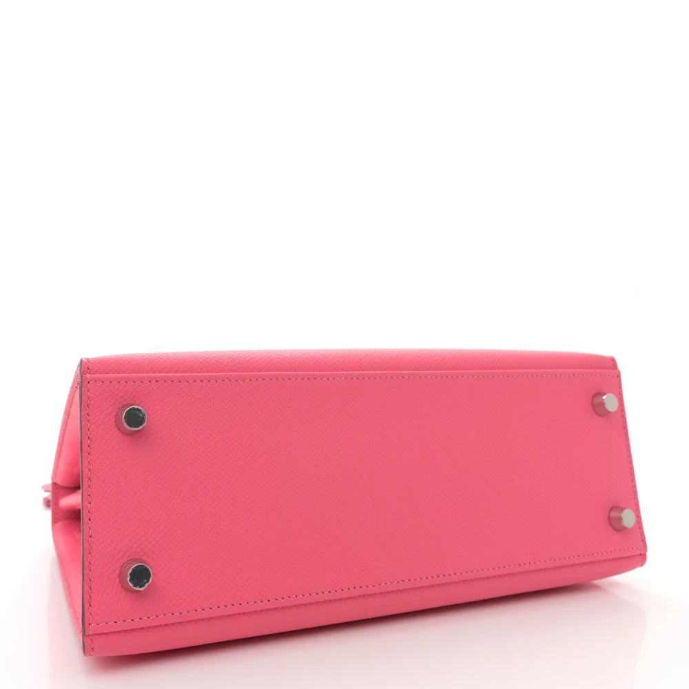 This Hermès Epsom Kelly Sellier 25 Rose Azalée is a charming and elegant handbag in a lively pink shade. The structured Epsom leather ensures durability and a crisp silhouette. The Sellier stitching enhances its polished and refined look. Palladium hardware adds a cool contrast, making the color pop beautifully. This Kelly is perfect for those who love sophisticated yet fun statement pieces.
