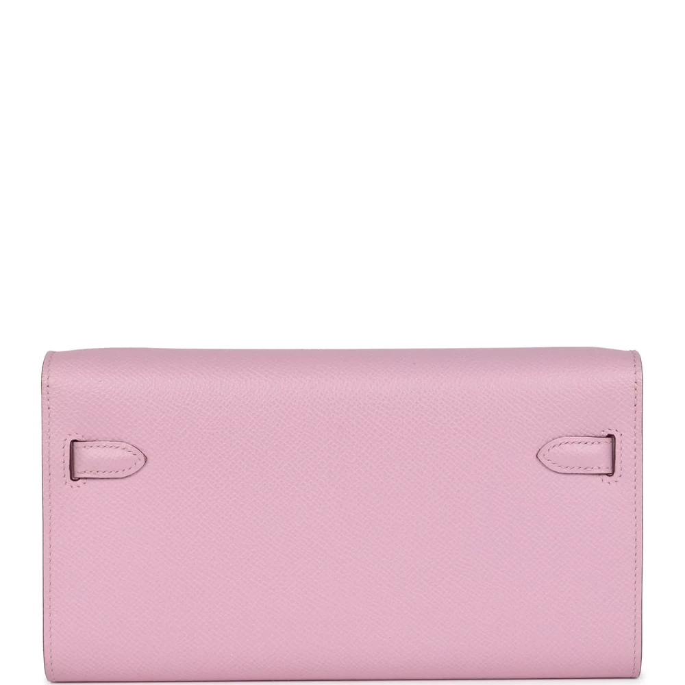 This Hermès Kelly Wallet To Go in Mauve Sylvestre is a refined expression of classic elegance. Crafted from Epsom leather, its structured texture enhances the soft yet vibrant mauve hue, offering a chic and sophisticated aesthetic. The Kelly turn-lock closure in palladium hardware adds a signature touch, while the detachable strap allows for versatile wear. Designed for both practicality and luxury, this wallet is a timeless statement piece.