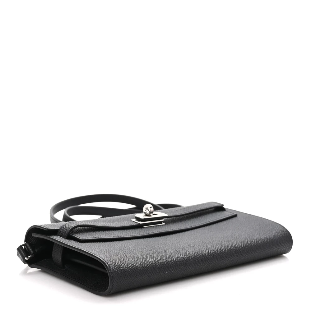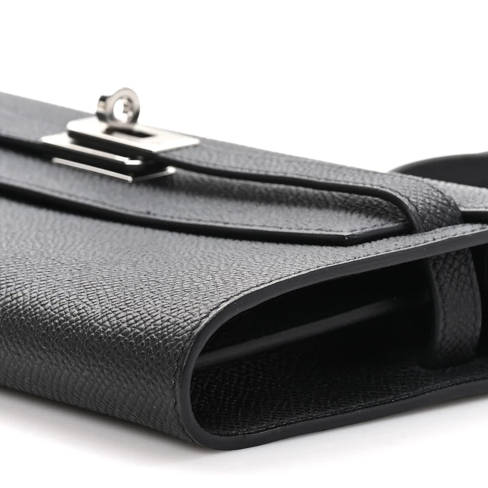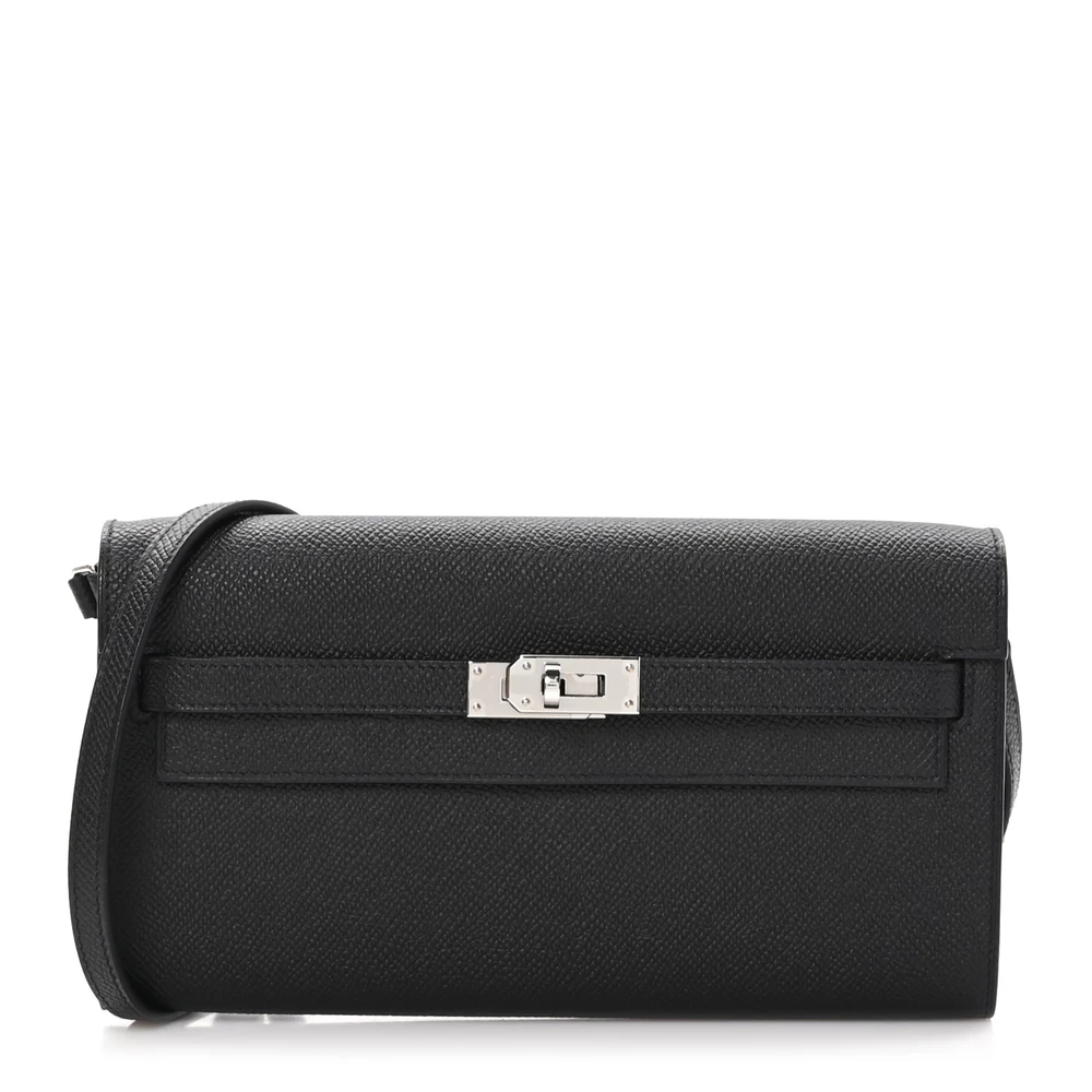This Hermès Epsom Kelly Wallet To Go Black is a sleek and practical accessory with a timeless appeal. The structured Epsom leather ensures durability while maintaining its refined look. The detachable strap allows for multiple styling options, making it a versatile companion. Gold hardware adds a touch of elegance to the classic black shade. This wallet is perfect for those who appreciate compact luxury with functional versatility.