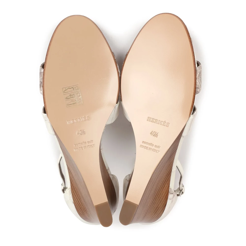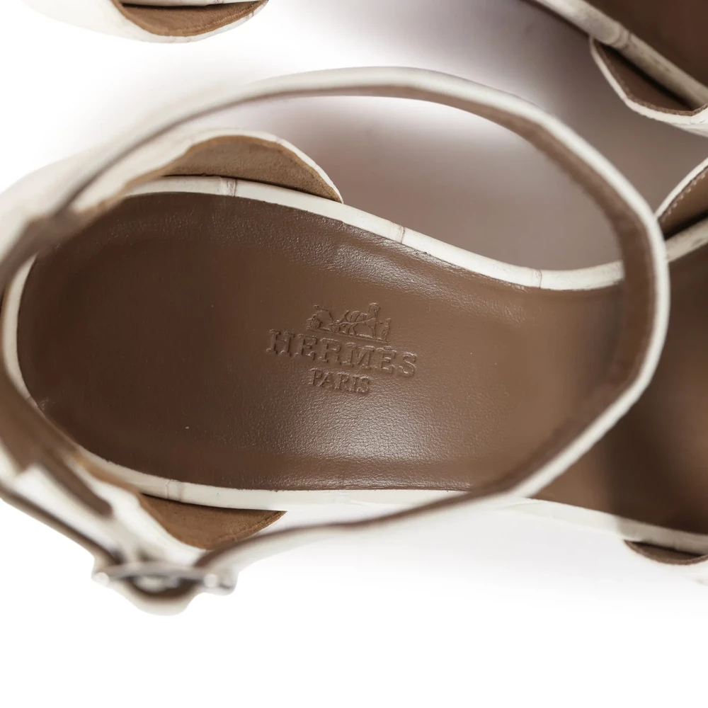 This Hermès Legend Sandal in Himalaya Niloticus crocodile with palladium hardware is a stunning embodiment of high fashion. The intricate craftsmanship of the exotic leather showcases the brand’s commitment to luxury. The design features a high heel for a bold and confident look. The Himalaya color palette adds a sophisticated and rare touch to the overall aesthetic. This sandal is a statement piece, perfect for those who seek exclusivity in their footwear.