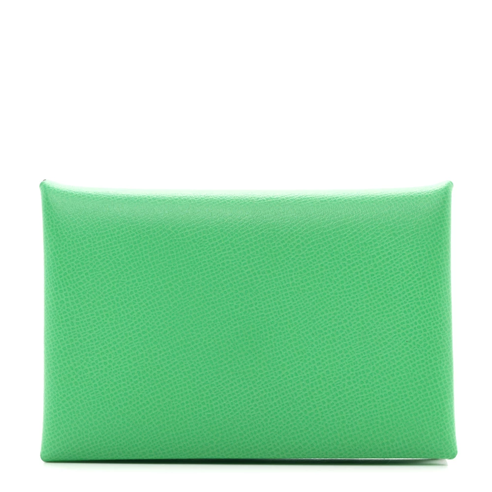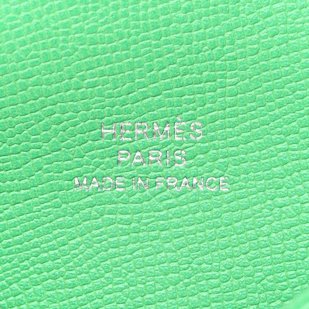 This Hermès Madame Calfskin Calvi Card Case in Menthe is a refined and elegant accessory. Crafted from richly textured Madame calfskin leather in a refreshing green hue, it embodies understated sophistication. The sleek design features a hidden palladium Clou De Selle snap closure, opening to reveal card slots on both sides for organized storage. Compact and versatile, this card case is a perfect blend of Hermès’ timeless craftsmanship and functional design.
