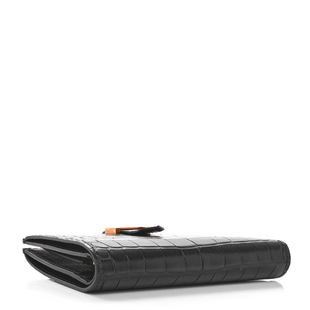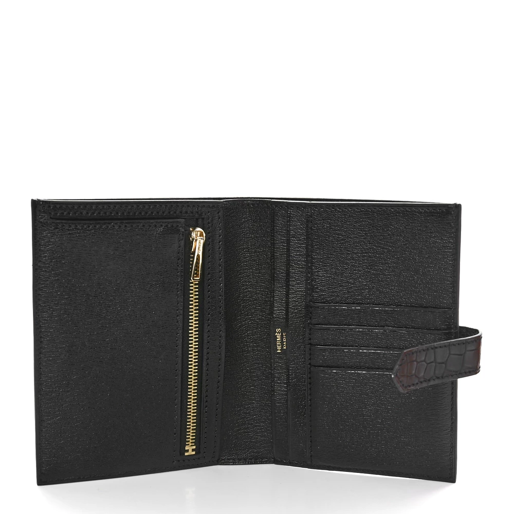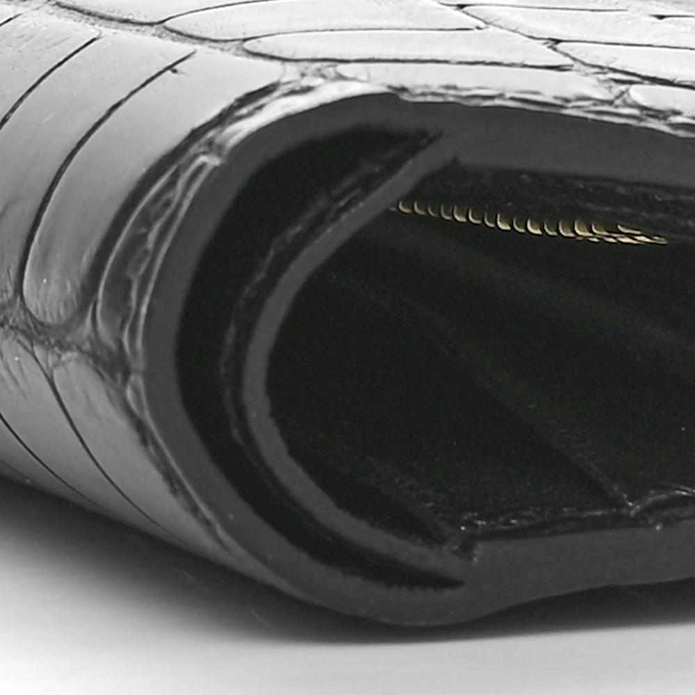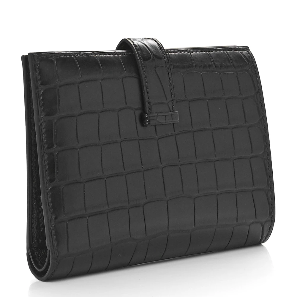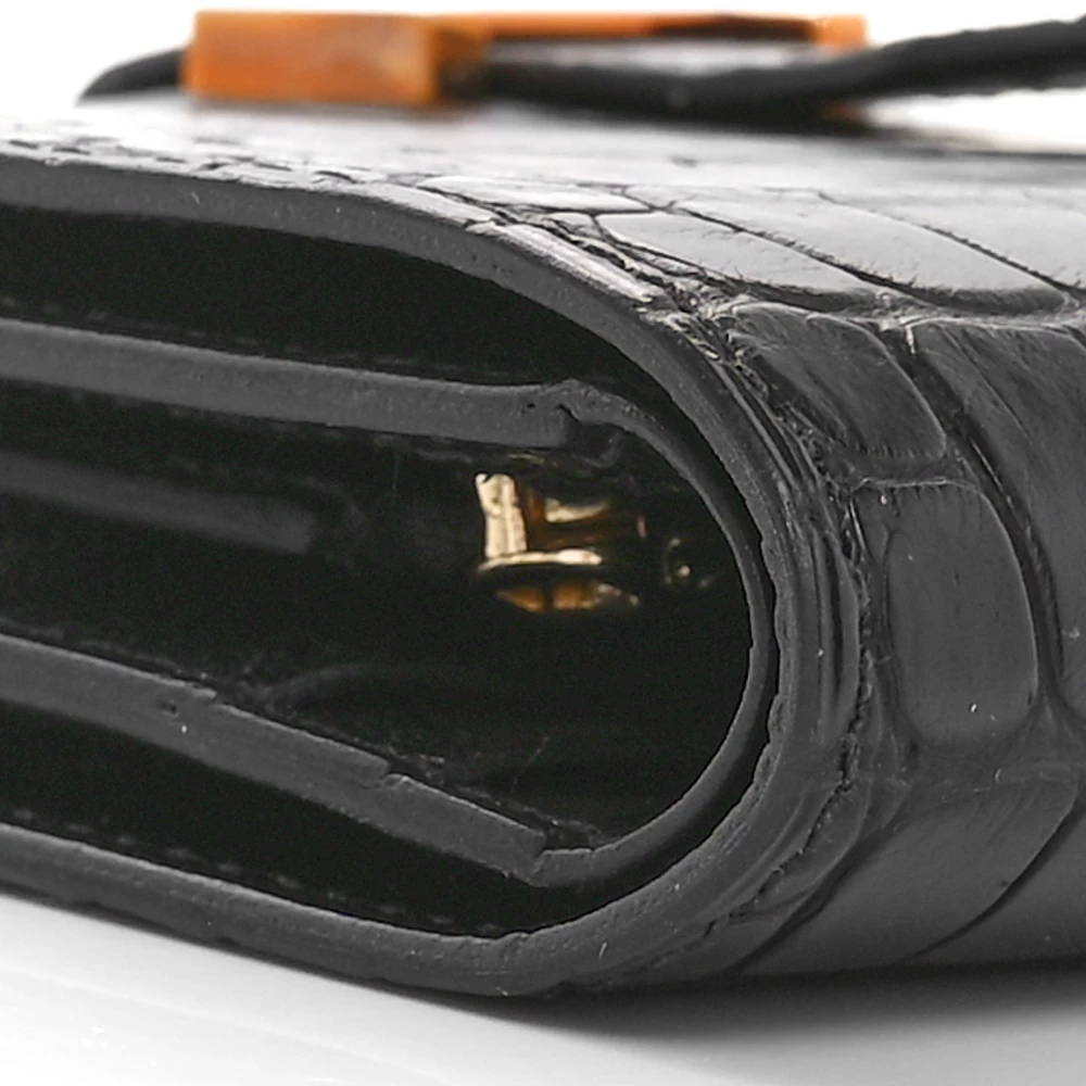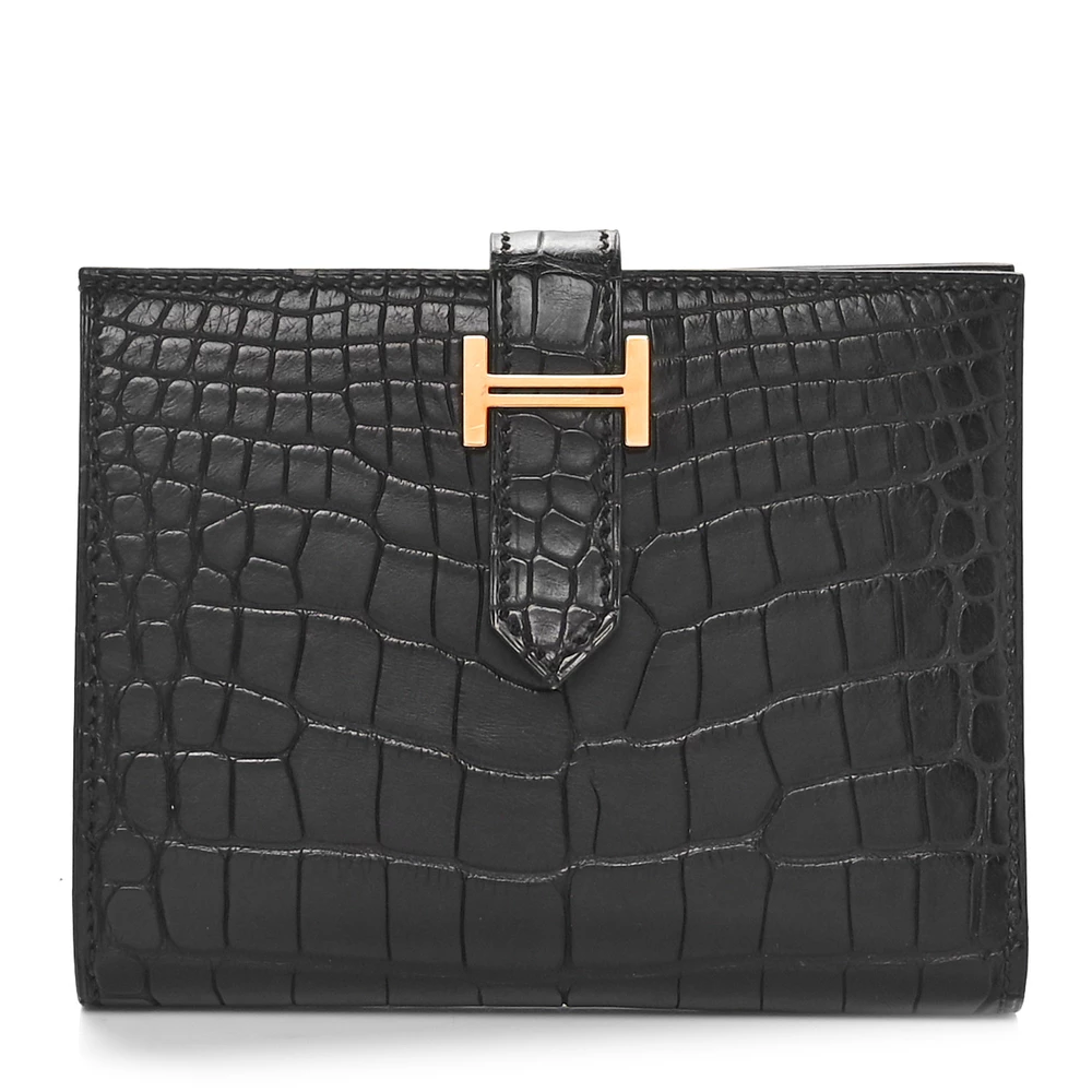 This Hermès Béarn Compact Wallet in Black is a refined essential that embodies the house’s timeless elegance. Crafted from matte alligator leather, its luxurious texture and sophisticated hue make it a statement of pure prestige. The signature “H” clasp adds a classic touch, while the compact tri-fold design offers a well-organized interior for cards and essentials. Sleek and versatile, this wallet is the perfect companion for those who appreciate understated luxury.