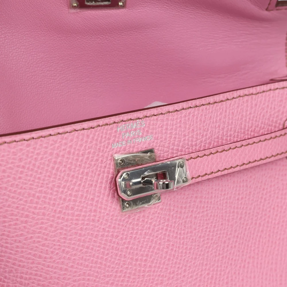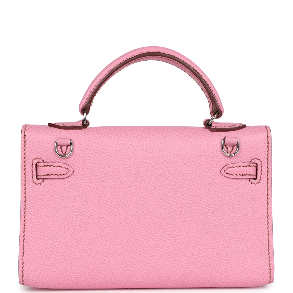 This Hermès Micro Kelly 15 in Bubblegum is a vibrant and playful statement. Made from durable Epsom leather, it features a compact design. The Palladium hardware adds a sleek touch. Its bright pink hue is perfect for adding a pop of color to your wardrobe. The small size makes it ideal for minimalists. A must-have for any Hermès collector. This bag is a true investment piece.