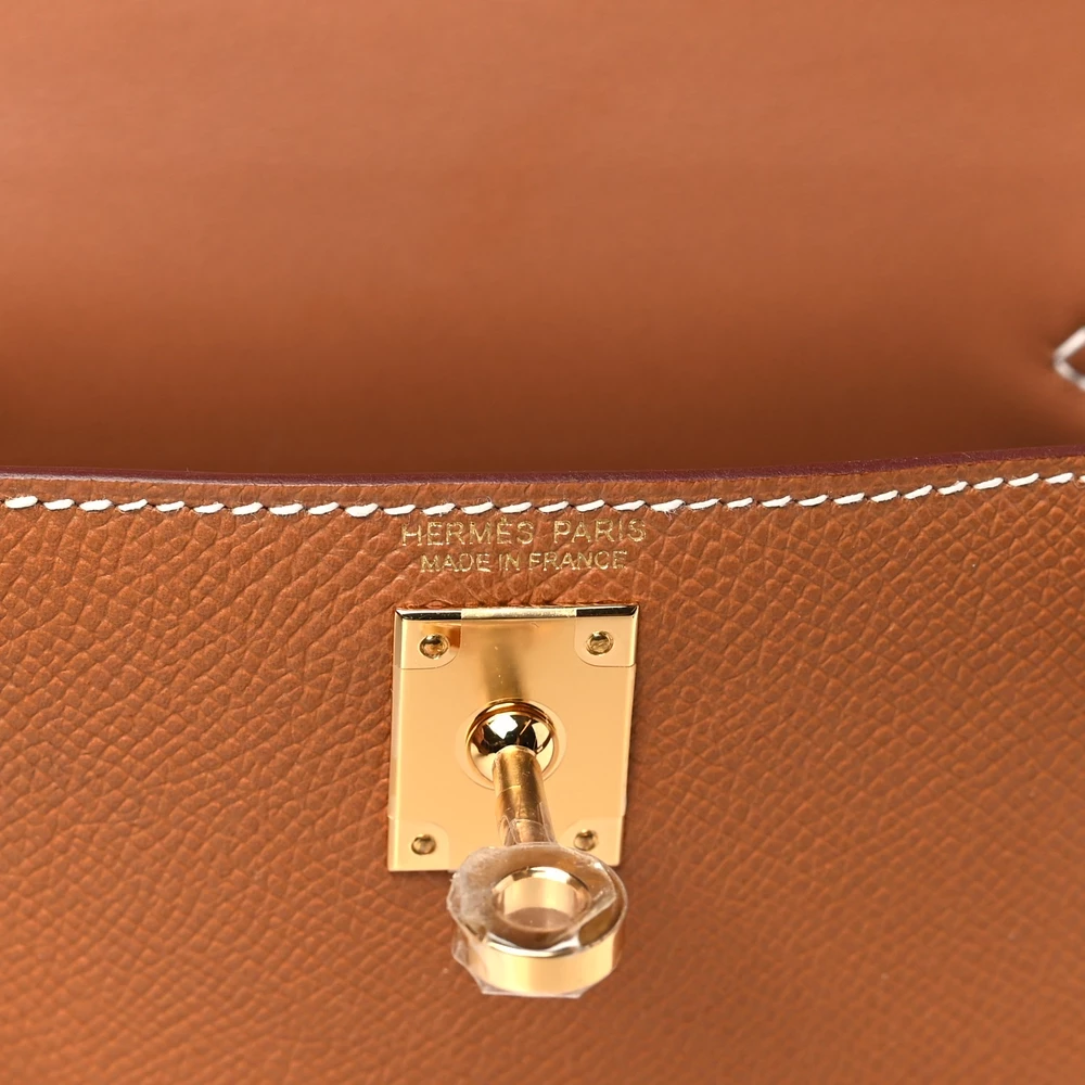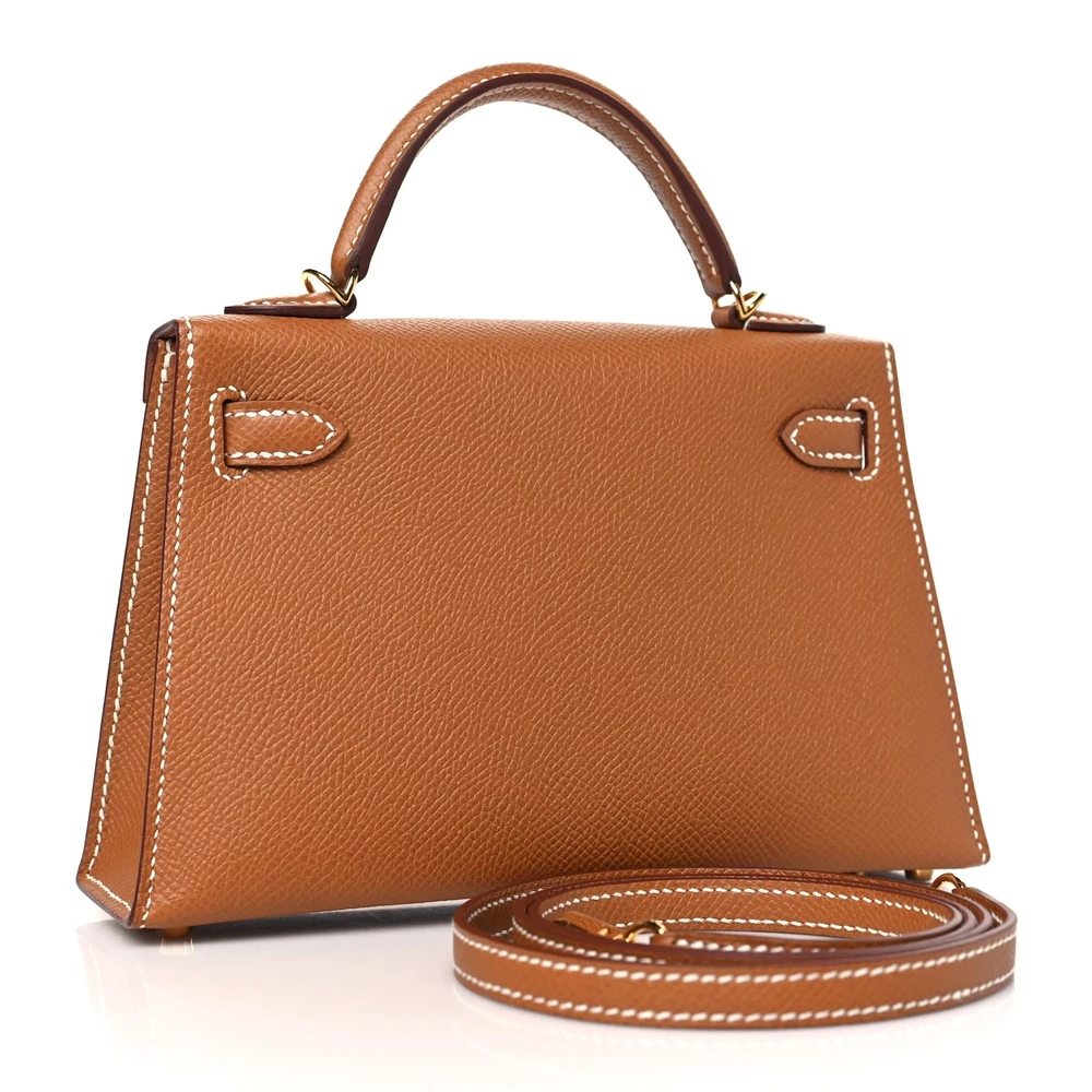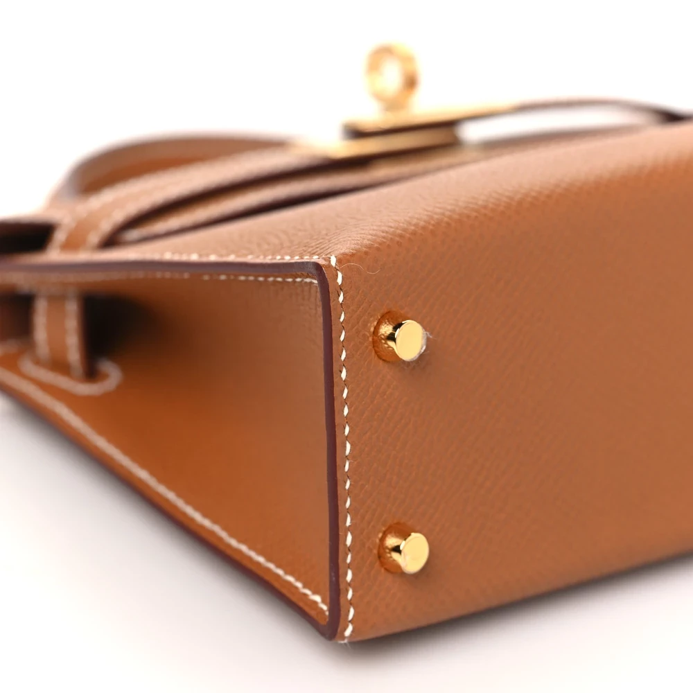 This Hermès Epsom Mini Kelly Sellier 20 Gold is a classic and compact handbag in the iconic Gold shade. The structured Epsom leather ensures a polished and scratch-resistant finish. The Sellier stitching enhances its refined silhouette, making it a perfect statement piece. Gold hardware complements the warm tones beautifully, adding to its luxurious appeal. This Mini Kelly is a timeless addition to any collection.