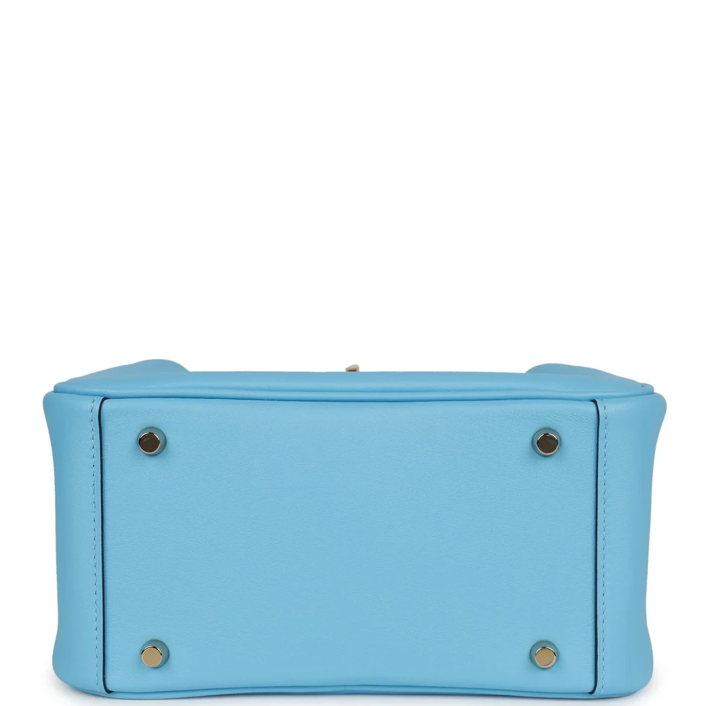 This Hermès Mini Lindy in Celeste Swift leather is a fresh and vibrant accessory, enhanced by gold hardware. Its sky-blue hue adds a touch of cheerfulness to any outfit, while its compact design ensures practicality. Perfect for those who appreciate bold yet timeless designs, it is a true reflection of Hermès’ creativity and craftsmanship.