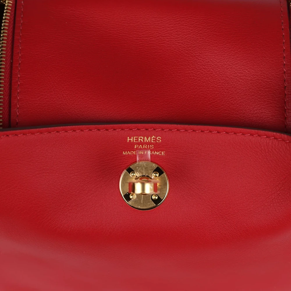 This Hermès Mini Lindy in Rouge Casaque Swift leather is a bold and striking accessory, enhanced by gold hardware. Its vibrant red hue exudes confidence and energy, making it a standout piece for any occasion. Perfect for the modern individual, it effortlessly combines style and functionality. A celebration of Hermès’ artistry, it is a timeless piece for any collection.