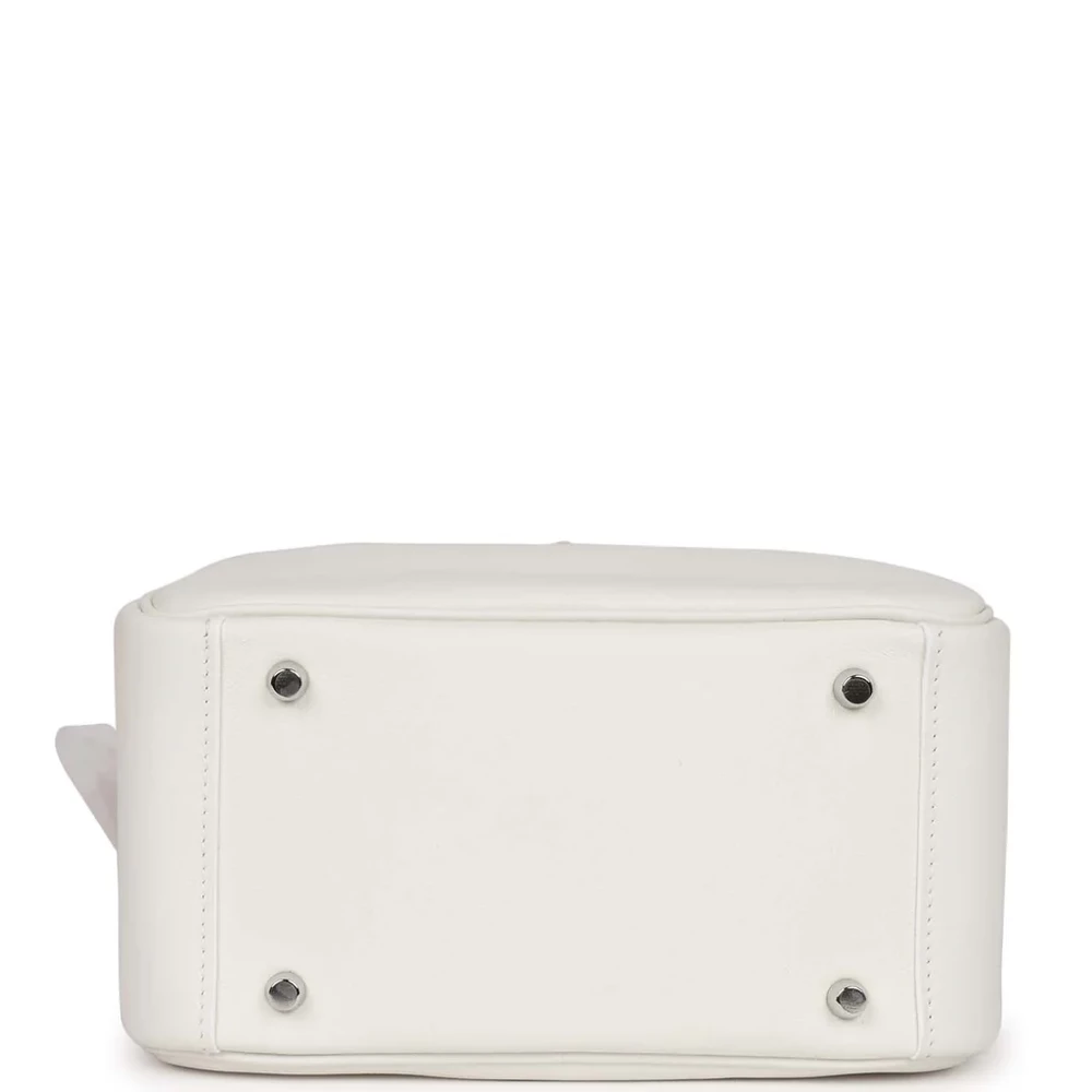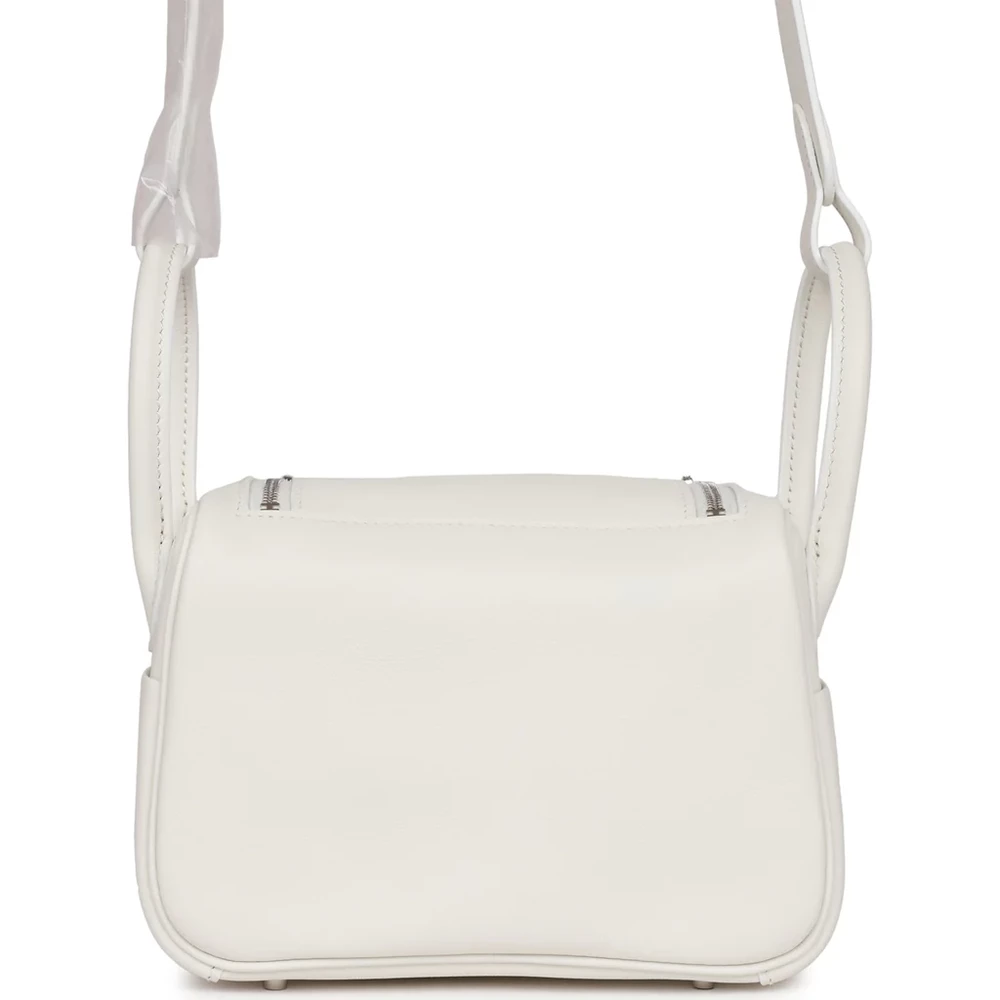 This Hermès Mini Lindy in White Swift leather is a fresh and elegant piece, accented by palladium hardware. Its pristine white hue exudes sophistication, making it a perfect accessory for any season. Compact and versatile, it is ideal for both casual and formal occasions. A testament to Hermès’ craftsmanship, it is a must-have for those who appreciate timeless style.