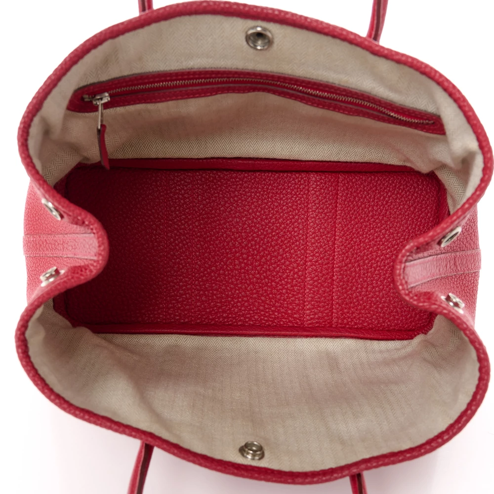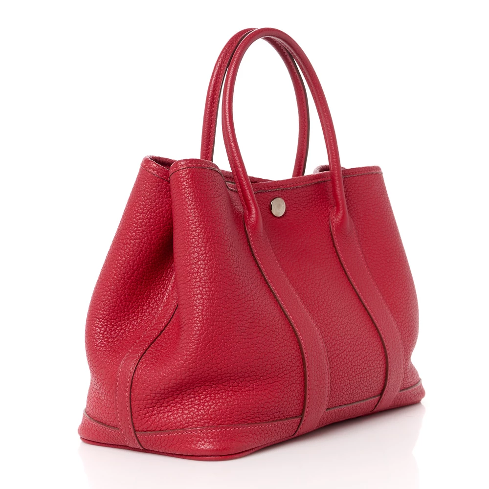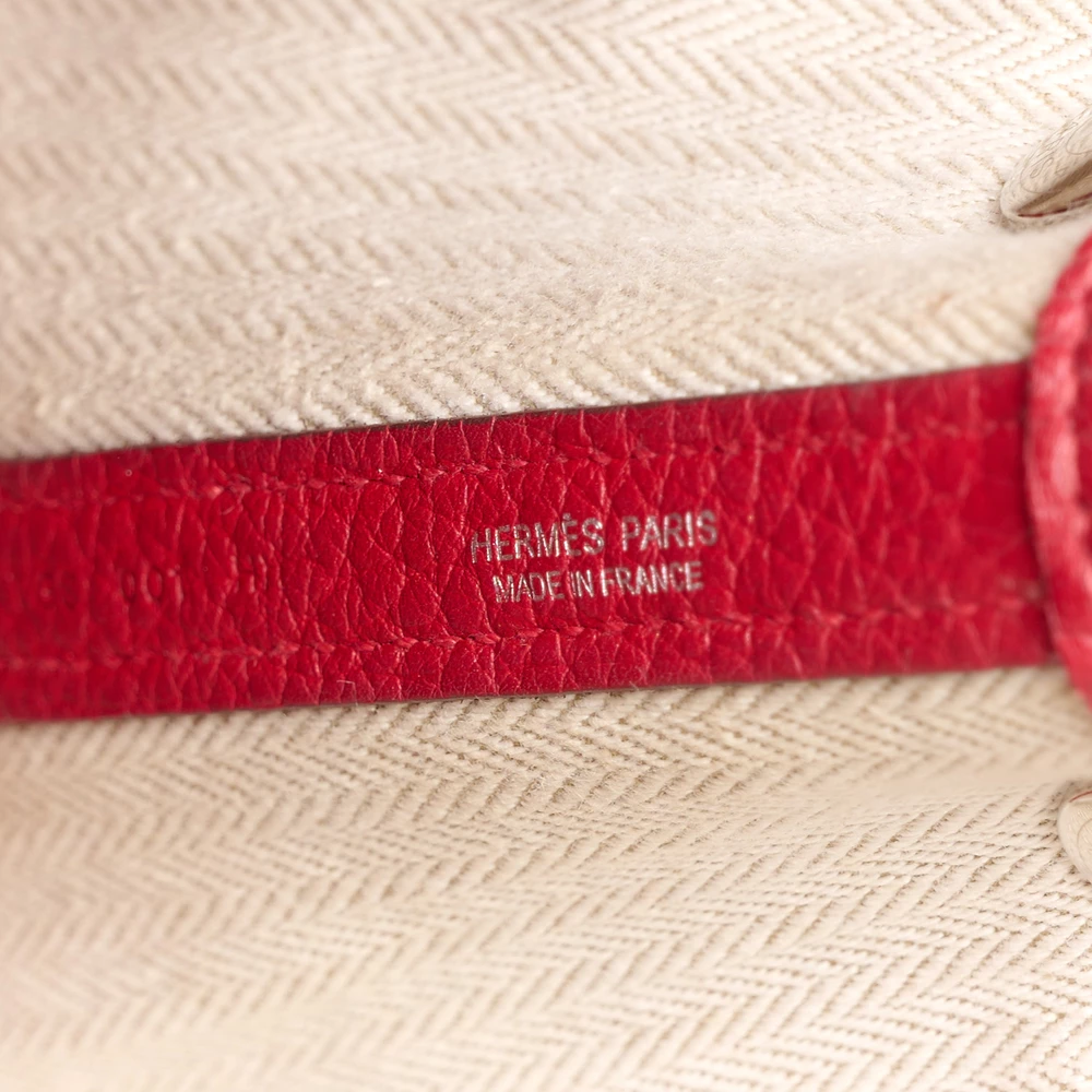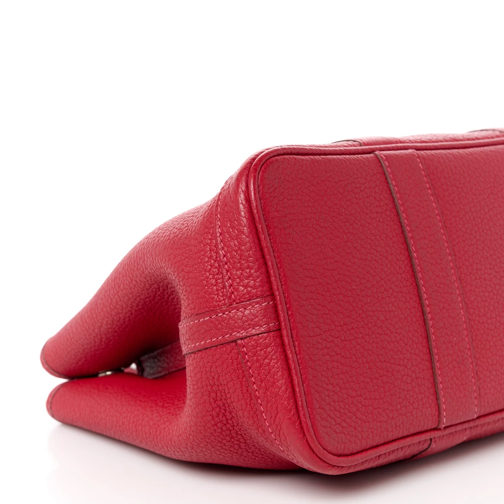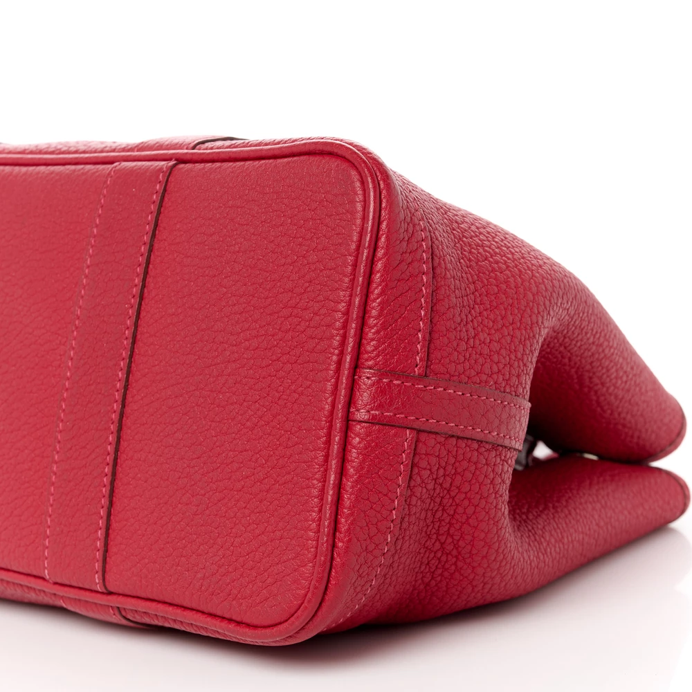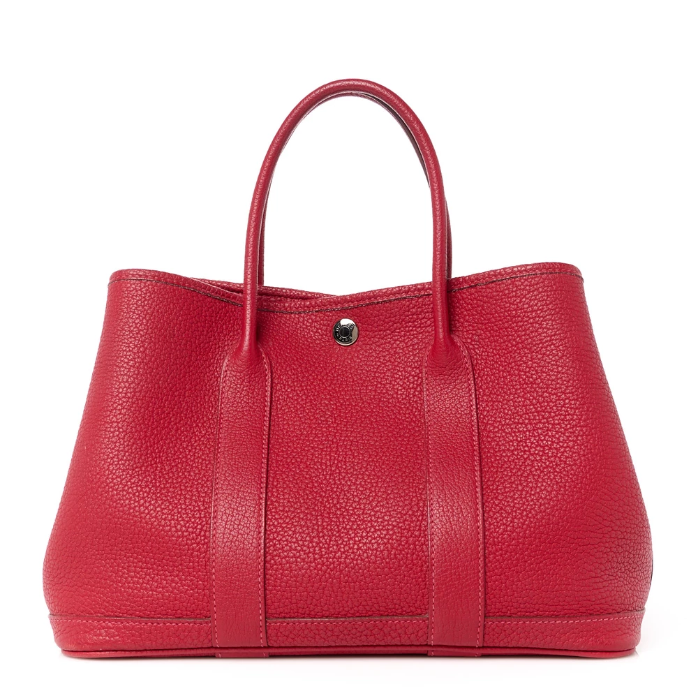 This Hermès Garden Party 30 TPM in Rouge Piment Negonda Leather is a sleek and vibrant tote with a rich red hue. The Negonda leather provides a soft yet structured finish, making it both stylish and durable. Its bold color and refined silhouette make it an eye-catching everyday piece.