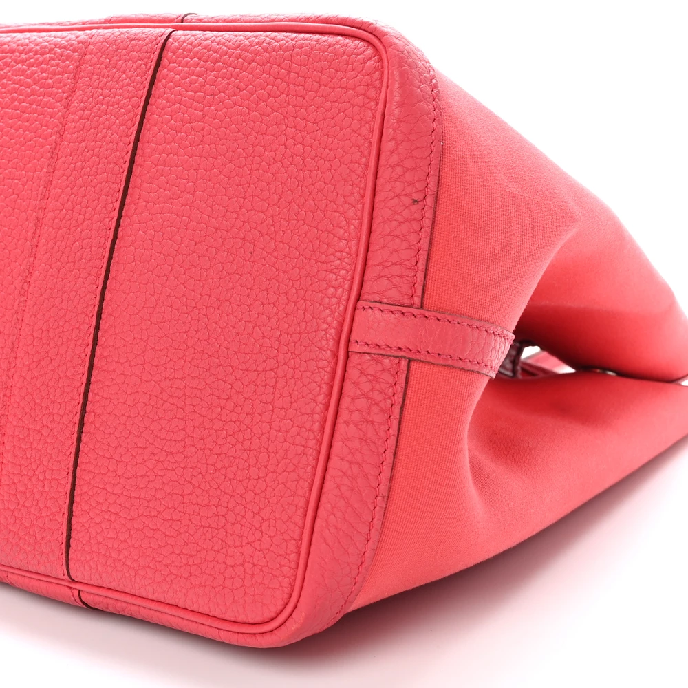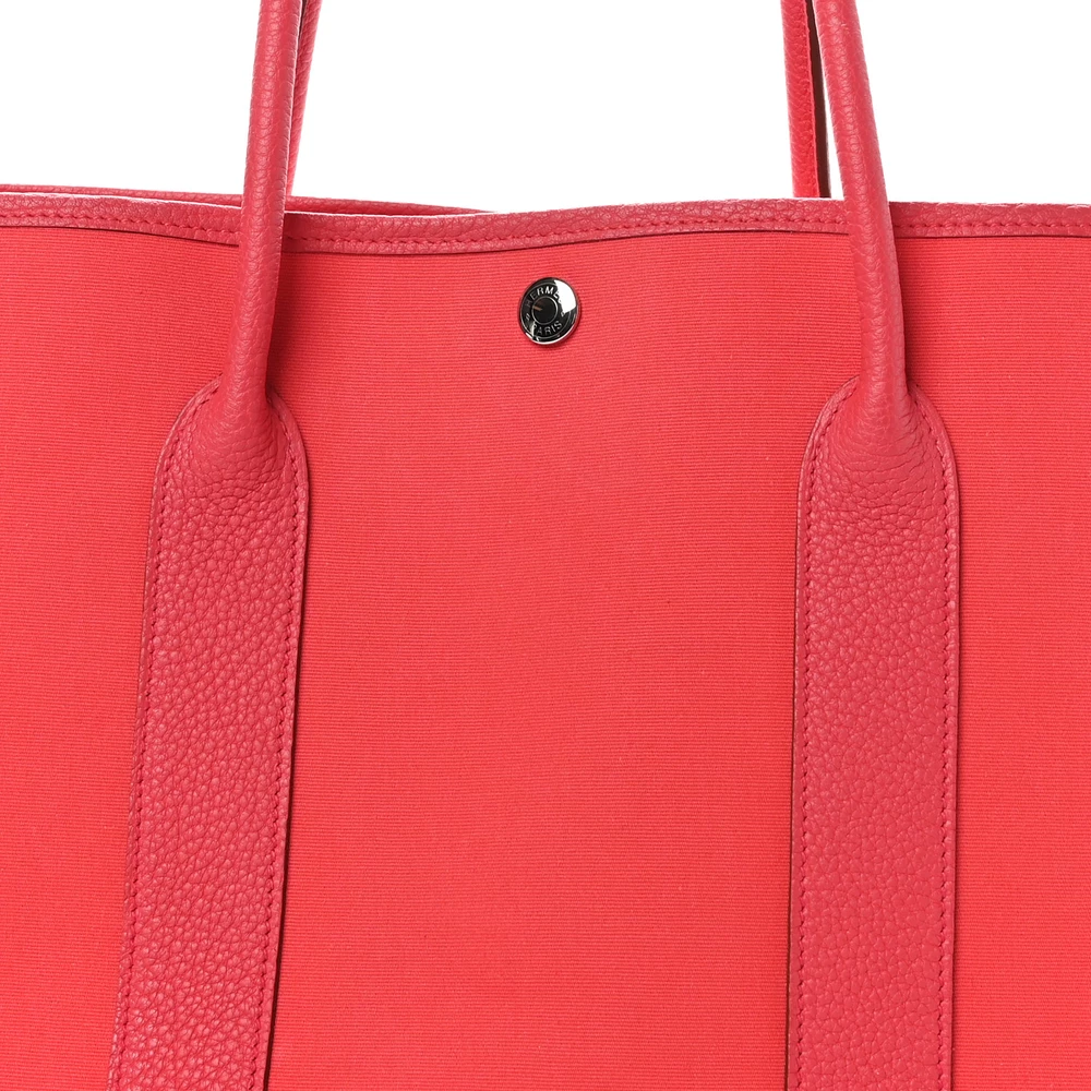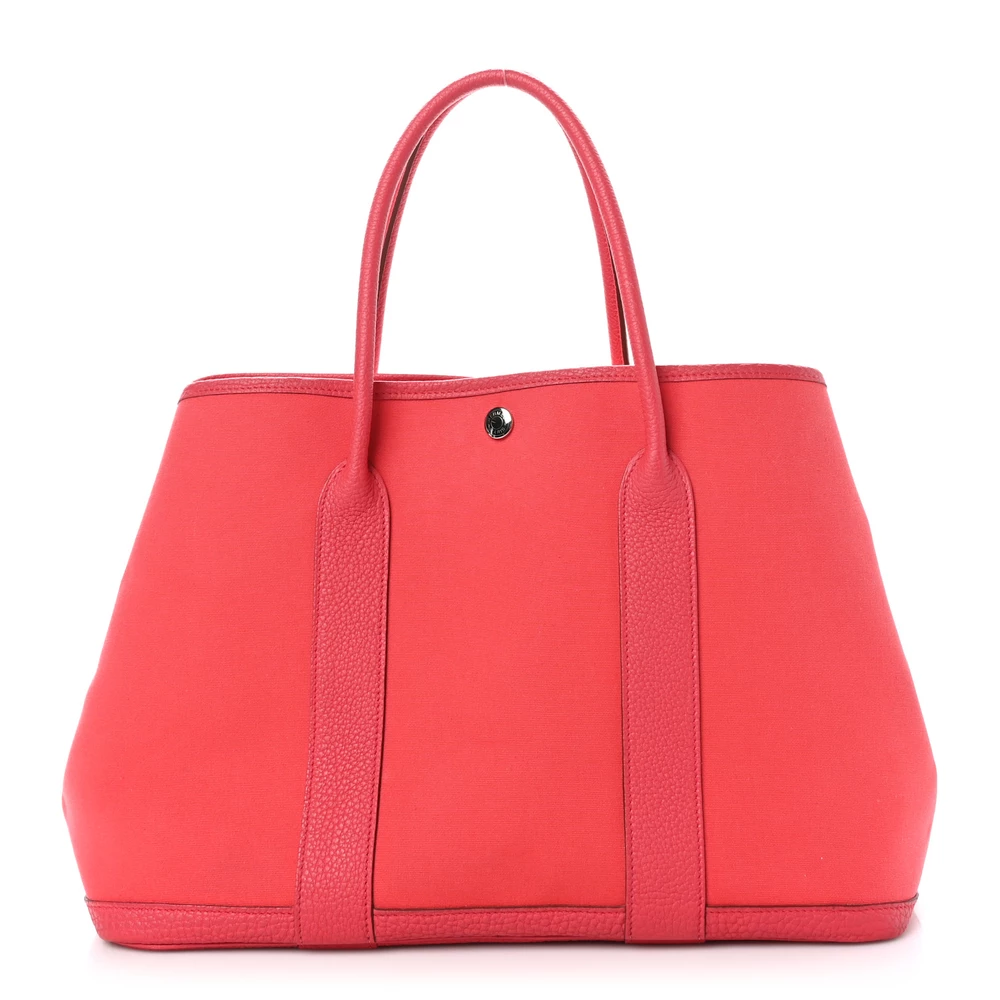 This Hermès Garden Party 36 MM in Bougainvillea Toile & Negonda Leather is a refined and lightweight tote with a vibrant color contrast. The Toile fabric ensures a relaxed yet structured shape, while the Bougainvillea Negonda leather trims enhance its luxurious appeal. Its spacious interior provides ample room for essentials, making it a practical yet stylish choice. The combination of canvas and leather offers a balance of elegance and casual charm. This unique shade adds a fresh and modern touch to any wardrobe.
