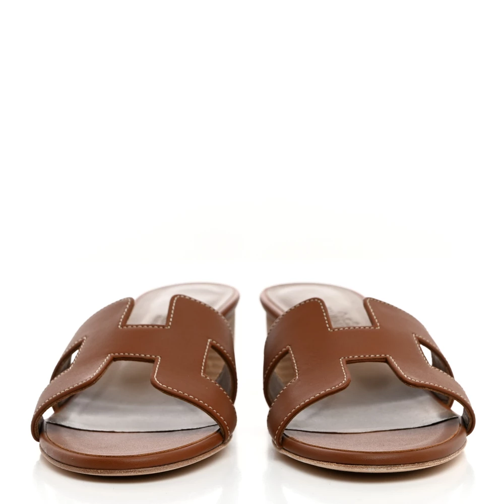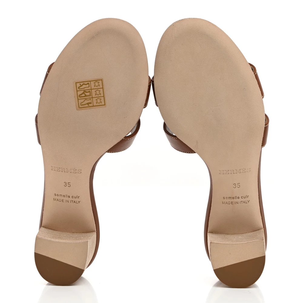 This Hermès Oasis sandal in Gold calfskin is a sophisticated and timeless choice. The rich tan hue complements the iconic H-cutout design, creating a polished and versatile look. Featuring a comfortable low block heel, it provides subtle elevation without sacrificing ease. Whether paired with casual summer dresses or elegant eveningwear, this sandal remains a go-to for effortless luxury.