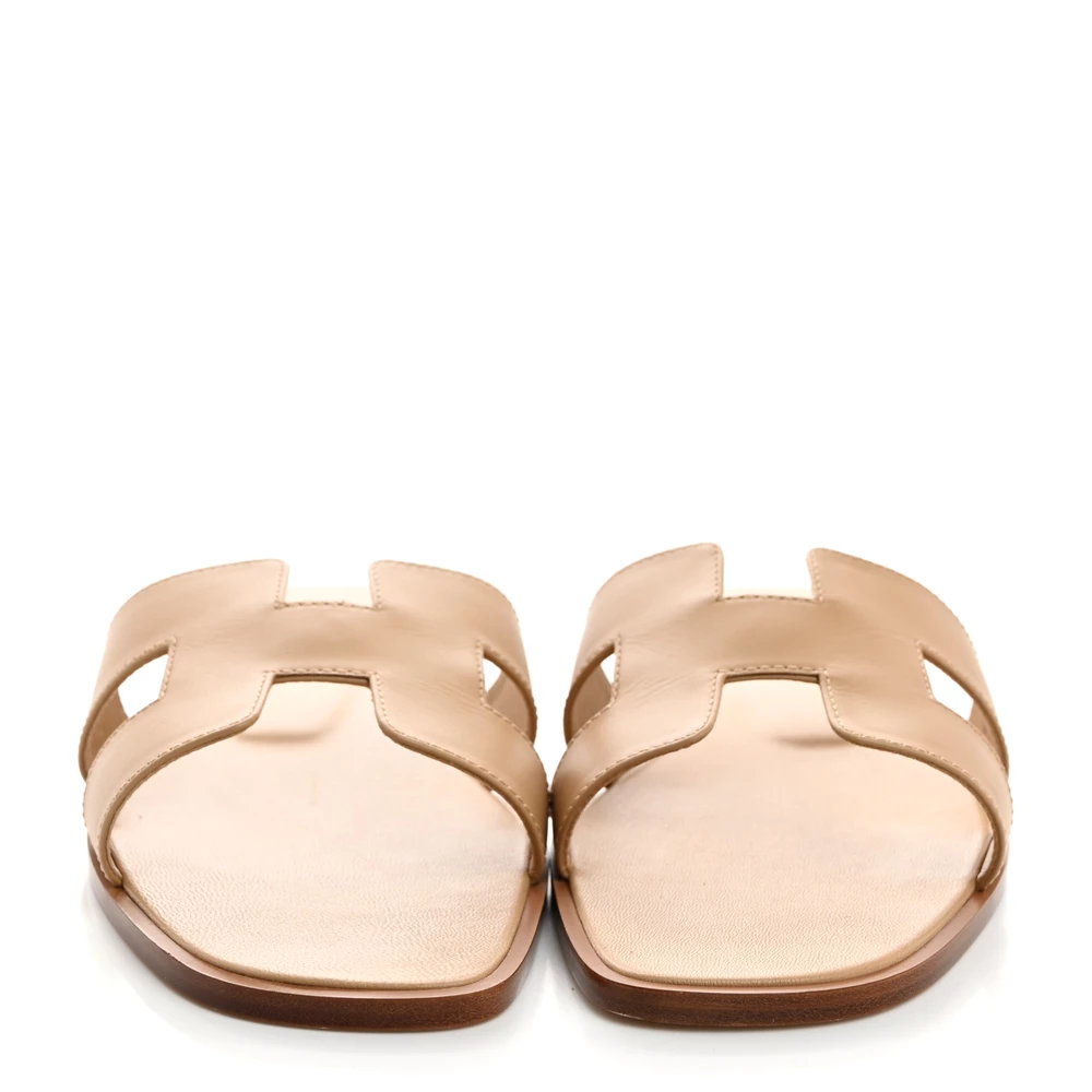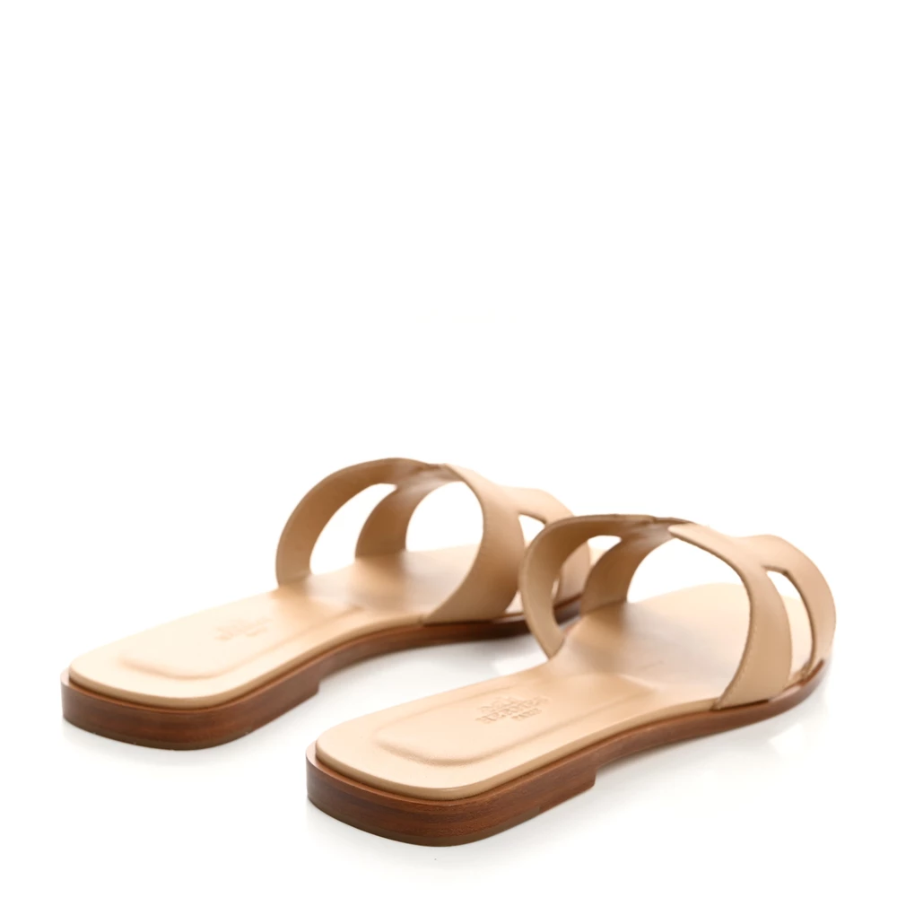 This Hermès Oran sandal in Beige Nude box calfskin is a timeless and elegant staple. The smooth leather enhances its refined appeal, while the iconic H-cutout design adds a signature touch. With a flat sole for effortless wear, it’s perfect for both casual and sophisticated looks. Whether styled with neutral outfits or bold prints, this sandal remains a wardrobe classic.