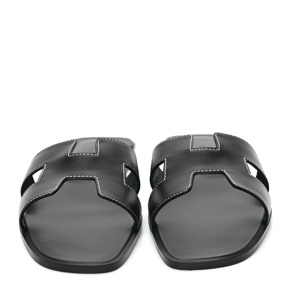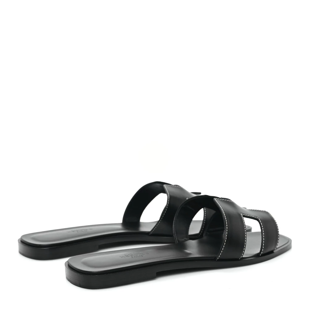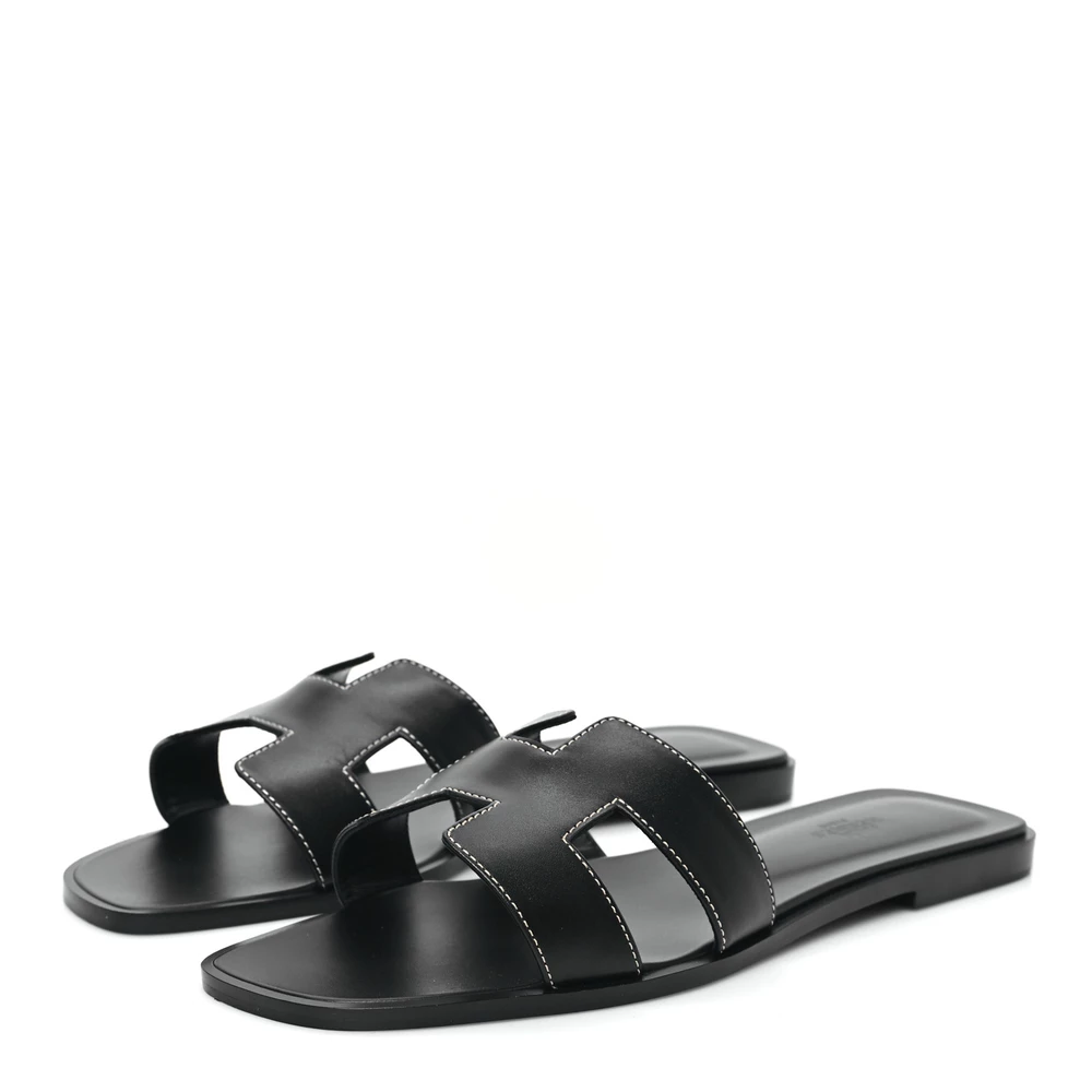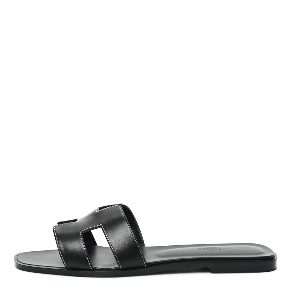 This Hermès Oran sandal in black box calfskin is a timeless and versatile piece. The sleek black leather is enhanced by the brand’s signature cutout design, making it an effortlessly stylish staple. With a flat sole for all-day comfort, it’s ideal for both casual and dressy occasions. Whether paired with relaxed summer looks or polished ensembles, this sandal is a must-have for any collection.