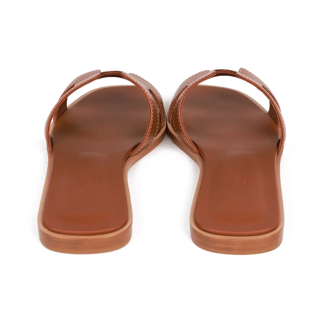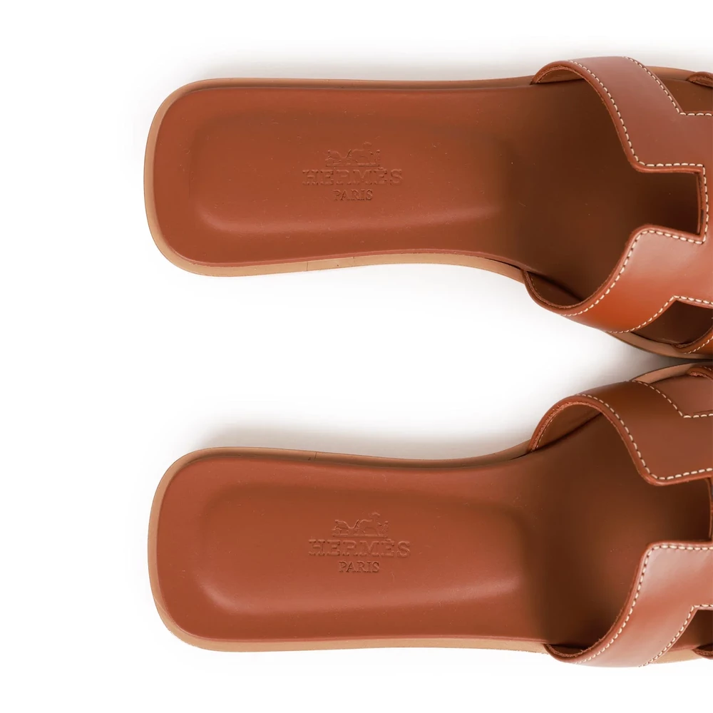 This Hermès Oran sandal in Gold box calfskin is an iconic piece of the brand’s collection. The rich, warm brown hue of the structured box calfskin leather ensures durability and elegance. The classic H-cut design provides a timeless aesthetic, while the flat sole ensures comfort. This sandal is a wardrobe staple, perfect for any occasion.