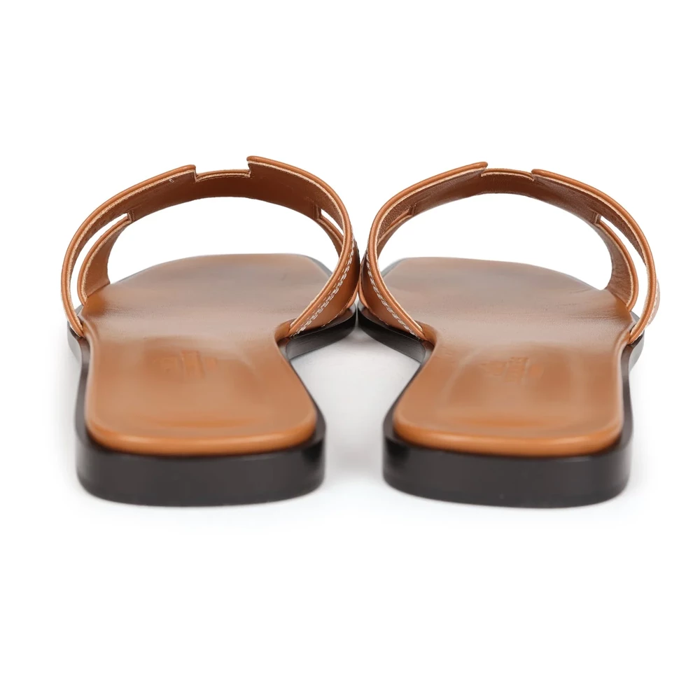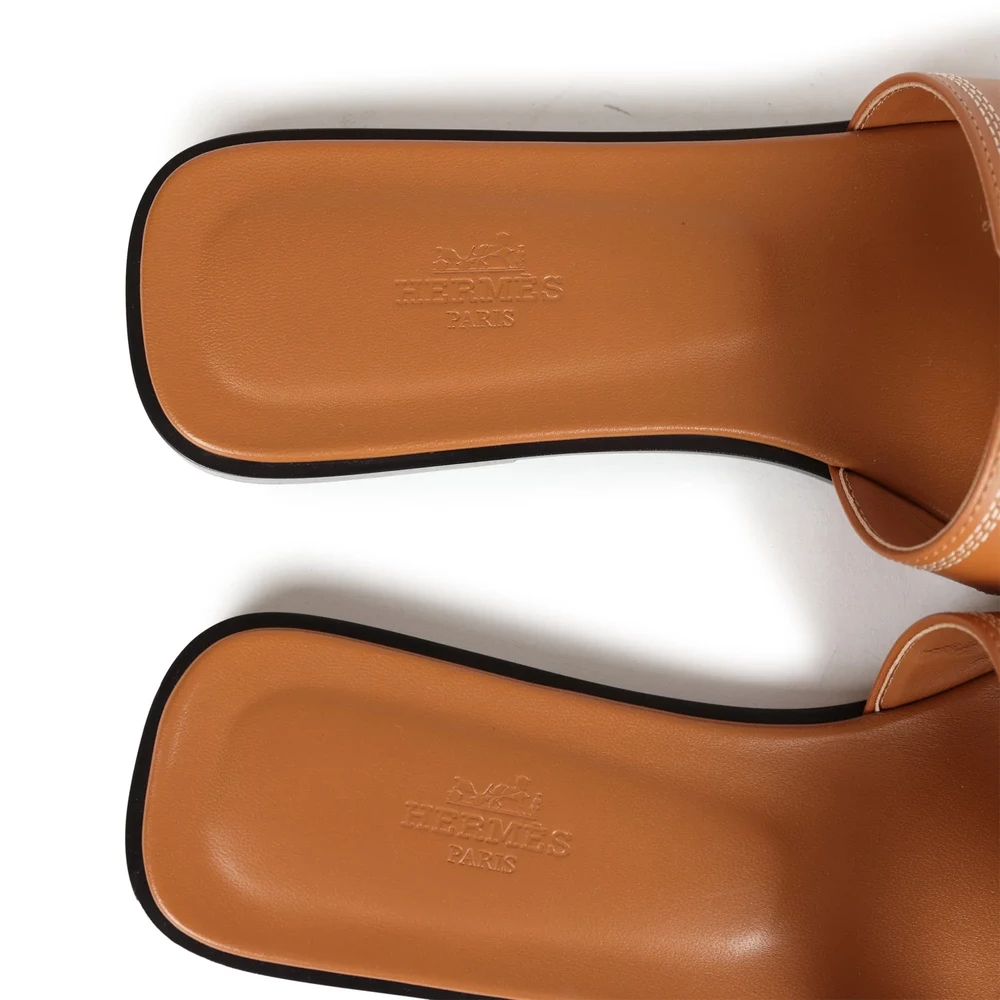 This Hermès Oran sandal in Natural Veau Brodé is a unique and artistic interpretation of the classic design. The embroidered leather detailing adds texture and depth, creating a visually captivating look. The signature H-cut maintains the brand’s iconic aesthetic, while the flat sole ensures comfort. This sandal is a perfect blend of craftsmanship and style.