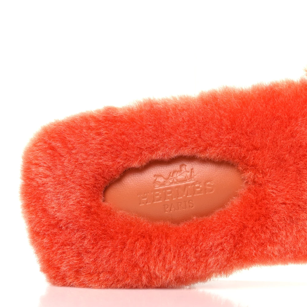 This Hermès Oran sandal in Orange woolskin is a vibrant and cozy reinterpretation of a classic. The plush wool lining adds warmth and texture, while the signature H-cutout maintains its timeless appeal. Designed for both indoor and outdoor wear, it blends comfort with effortless style. Whether paired with casual layers or relaxed loungewear, this sandal is a standout choice.