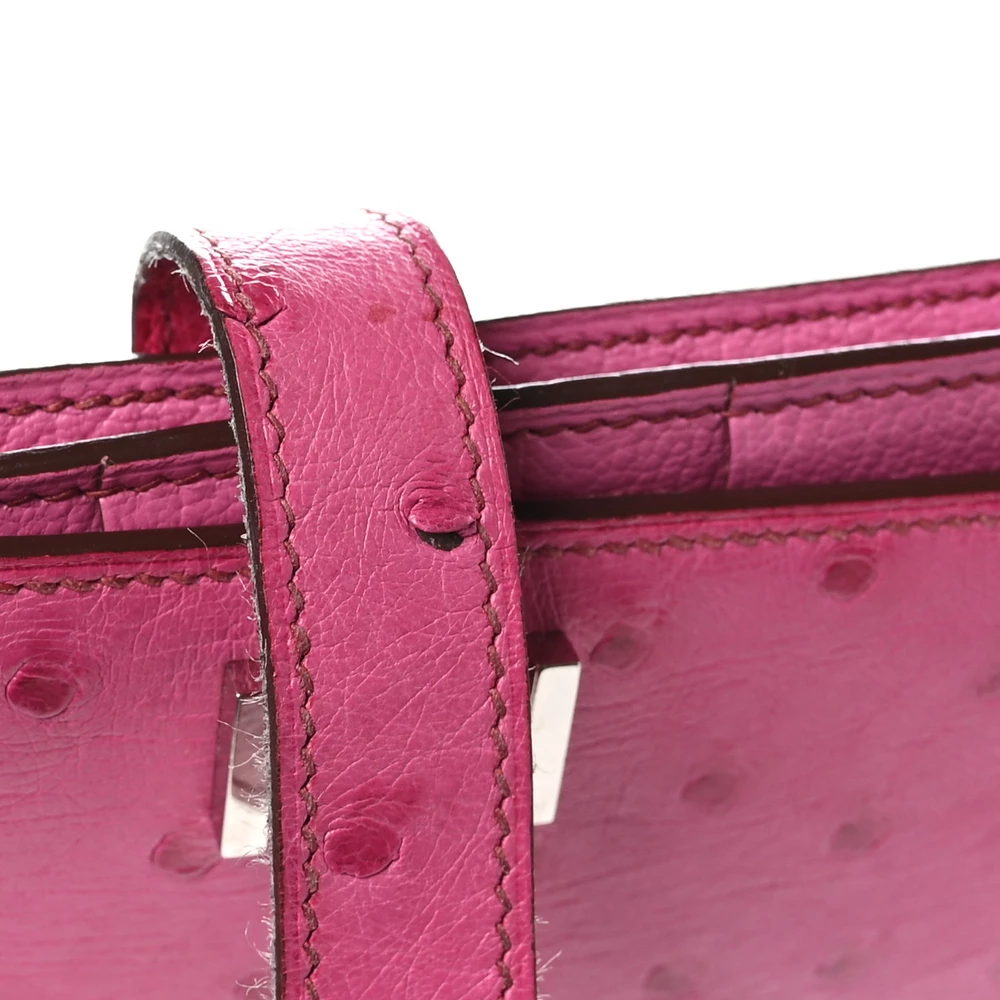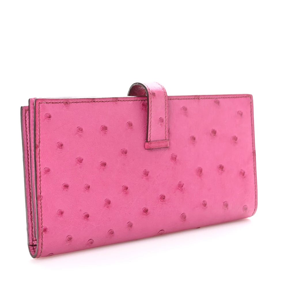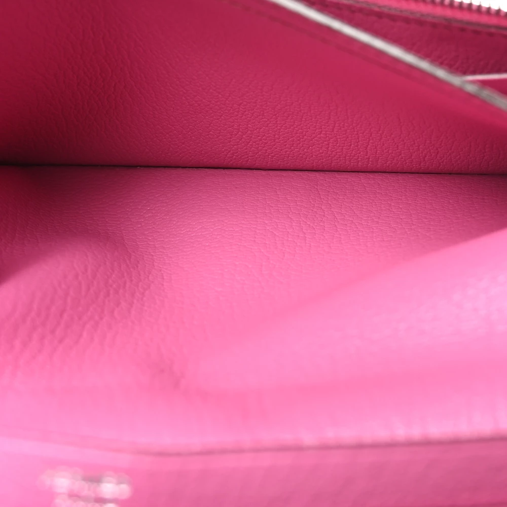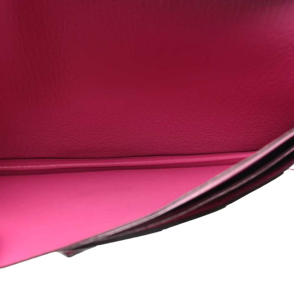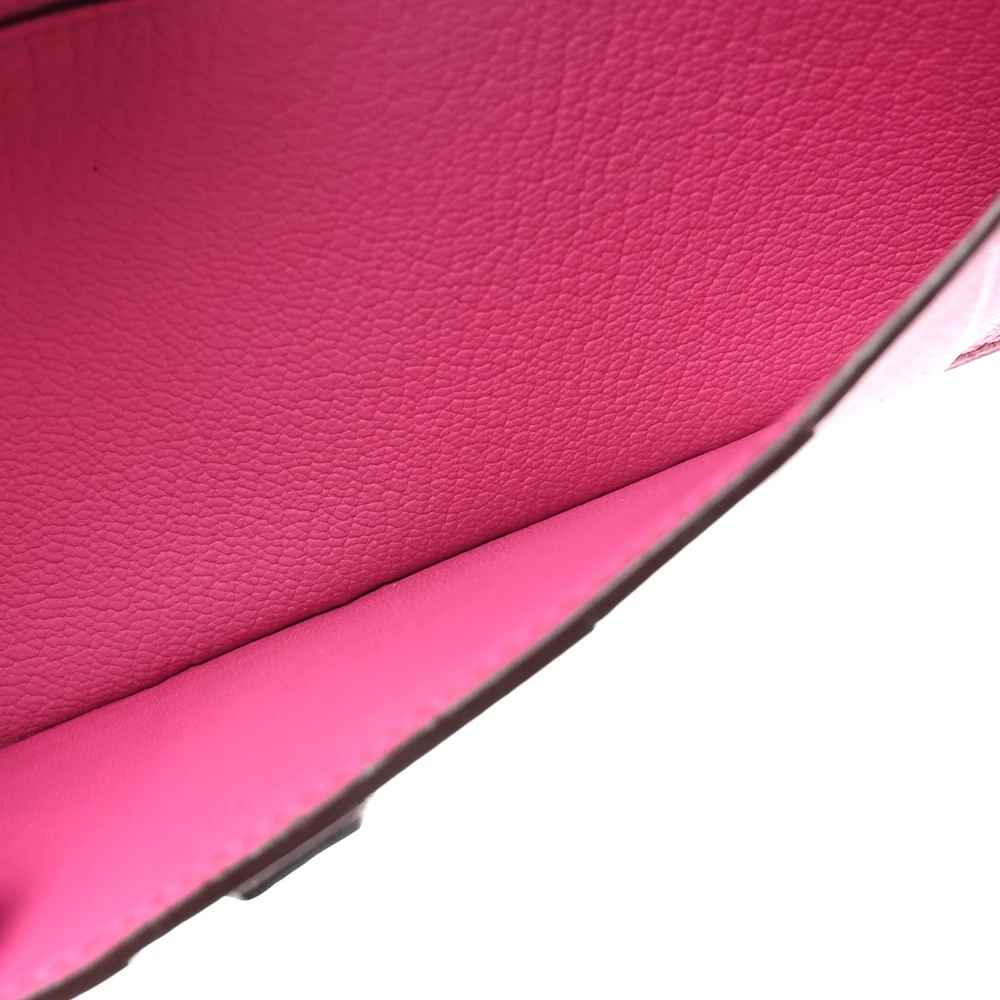 This Hermès Ostrich Bearn Wallet in Fuchsia is a stunning example of luxury and craftsmanship. Crafted from exotic ostrich leather, this wallet boasts a striking red hue with subtle pink undertones, creating a vibrant and sophisticated look. The elegant crossover strap, adorned with sleek silver palladium hardware, secures the wallet and opens to a thoughtfully designed interior. Inside, you’ll find a compact yet functional layout with card slots, patch pockets, billfolds, and a zippered currency compartment, all lined with matching leather. This chic and refined wallet is the perfect blend of exotic elegance and practicality, making it an essential addition to any luxury collection.