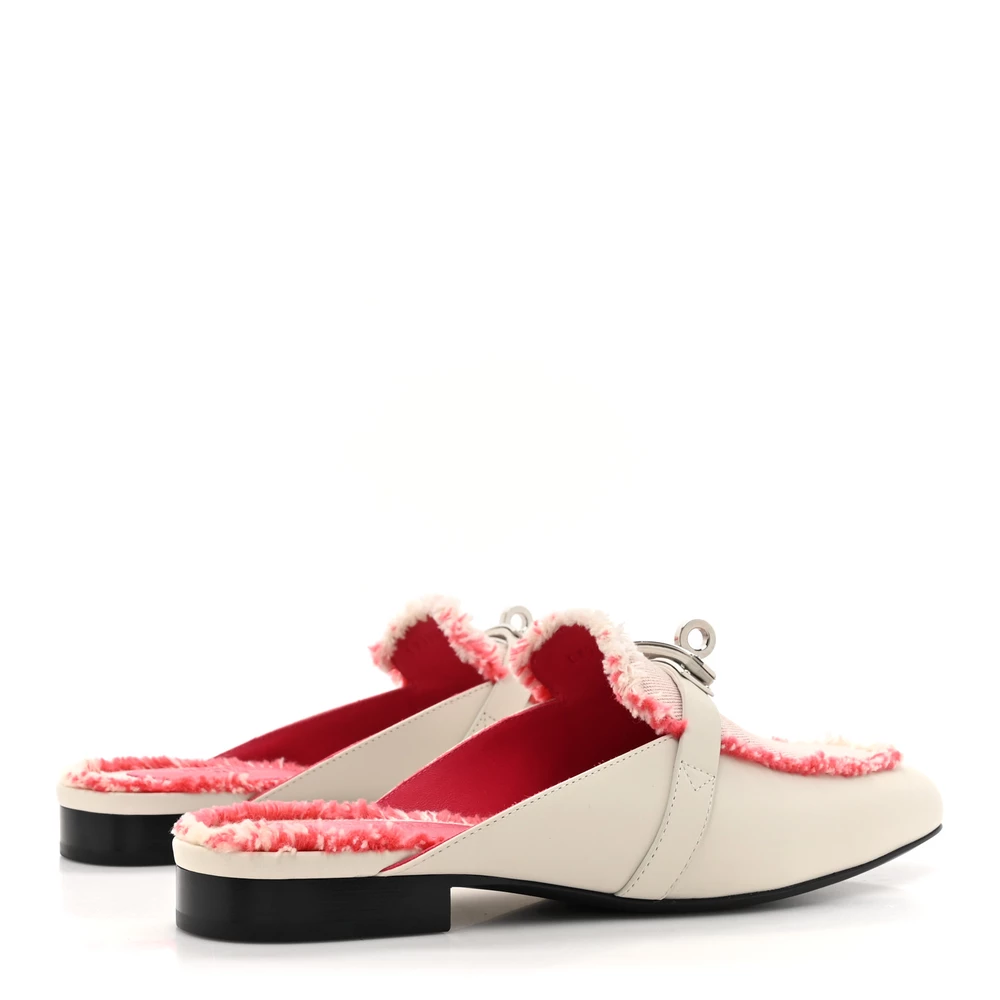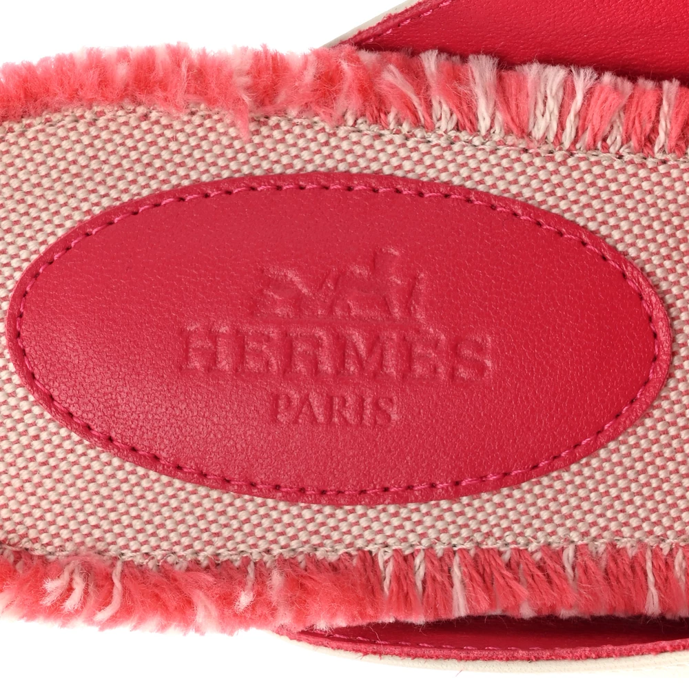 This Hermès Oz mule in Beige Glaise and Framboise fringed H canvas is a bold and sophisticated choice. The soft beige leather base is elevated with the signature H fringe detail in a striking pink hue. Designed for both comfort and statement-making style, it features a cushioned sole for easy wear. Whether dressed up or down, this mule brings a touch of Hermès heritage to any outfit.
