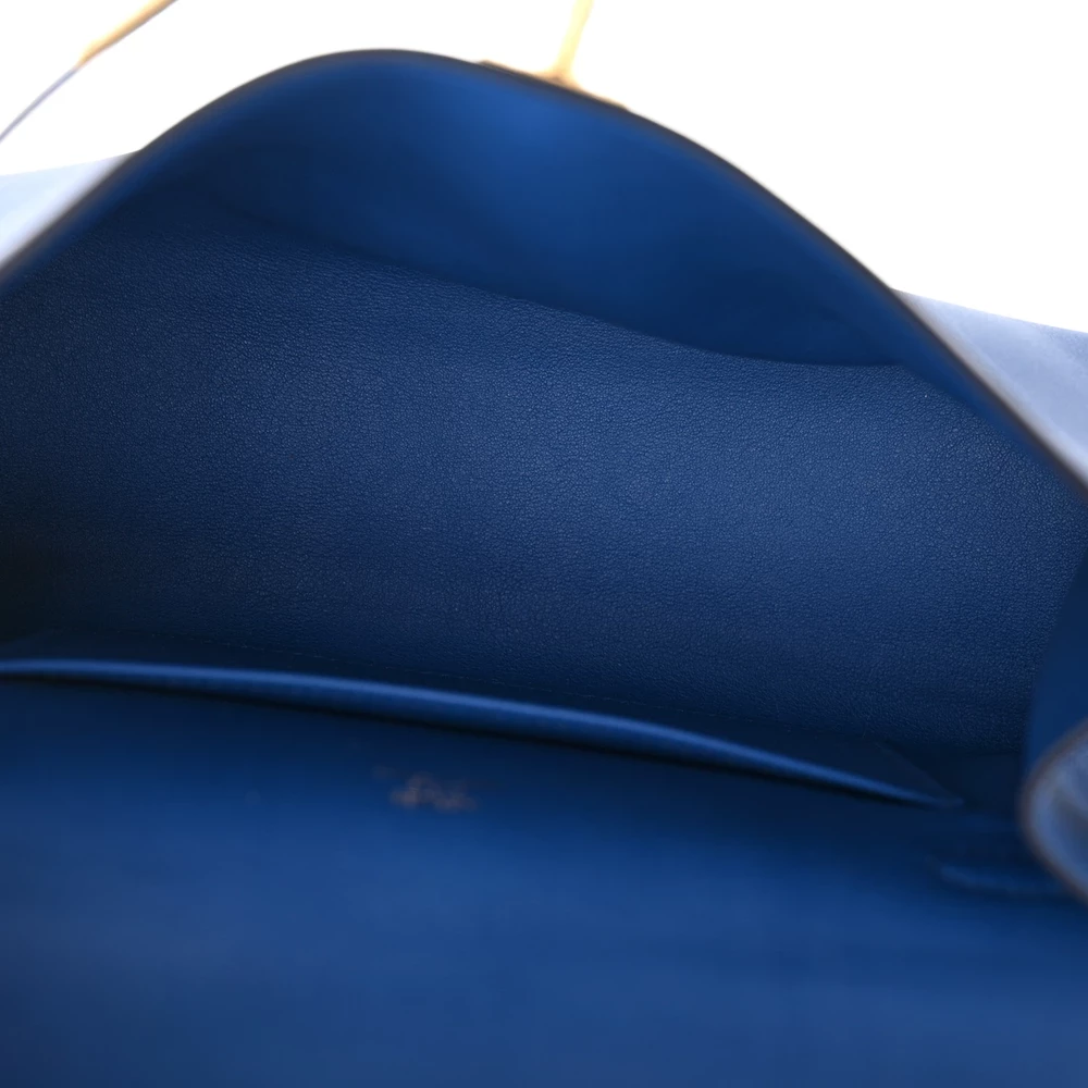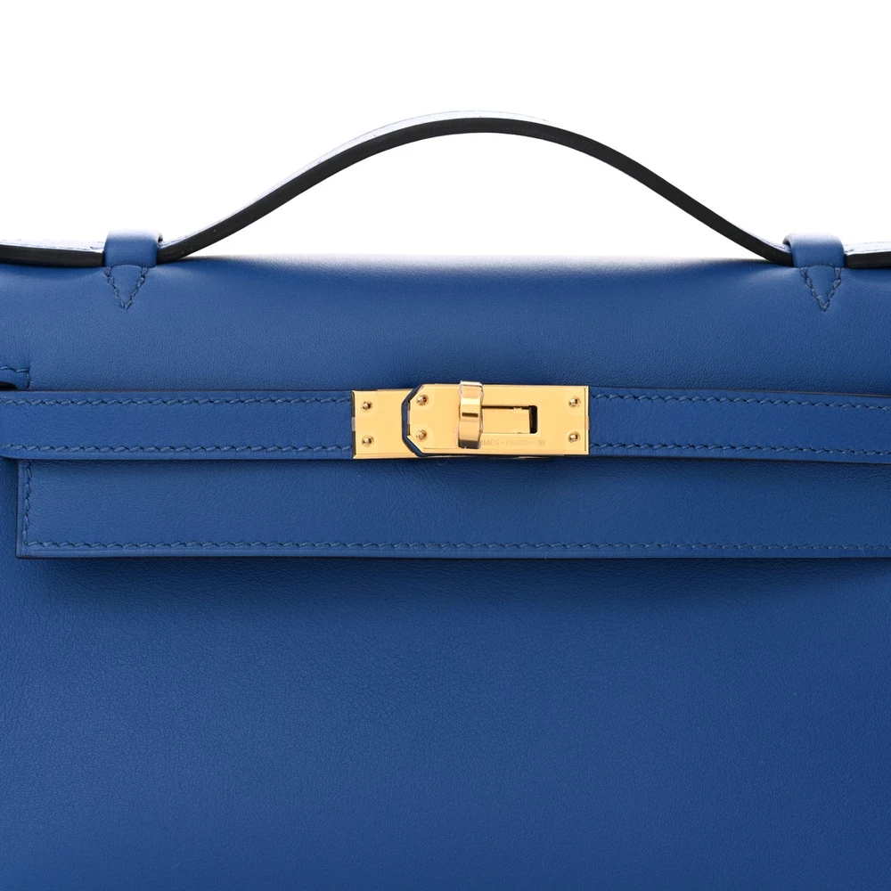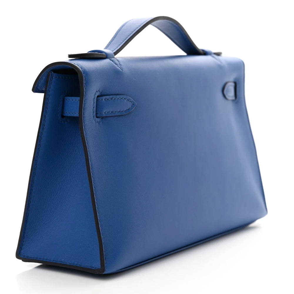 This Hermès Swift Kelly Pochette Clutch Bleu France is a sophisticated and vibrant clutch in a striking royal blue shade. The Swift leather provides a smooth and supple texture, enhancing its refined appeal. The compact Pochette design makes it perfect for evening wear. Gold hardware adds a touch of warmth and luxury. This clutch is a statement piece for those who love bold and elegant accessories.