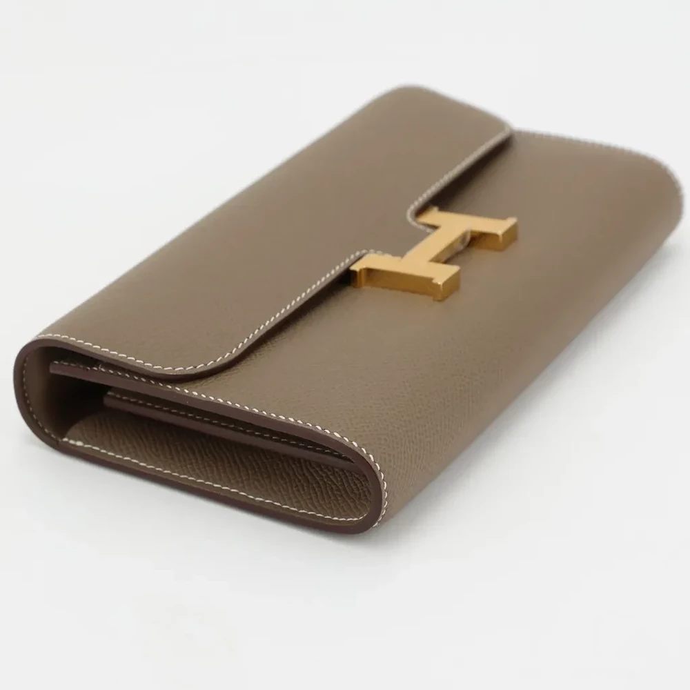 This Hermès Constance To Go long wallet is a refined and versatile piece, crafted from durable Epsom leather in the timeless Etoupe (18) shade. The neutral taupe tone is beautifully complemented by radiant gold hardware, creating an effortlessly sophisticated look. Stamped with a “W” for 2024, this wallet reflects Hermès’ dedication to impeccable craftsmanship and enduring design. Measuring approximately 20.5cm in width and 11.5cm in height, it features a detachable 122cm shoulder strap, allowing for both crossbody and clutch-style wear. Accompanied by its original box and felt protector, this elegant wallet is available in Singapore, making it a desirable addition for collectors and luxury enthusiasts alike.