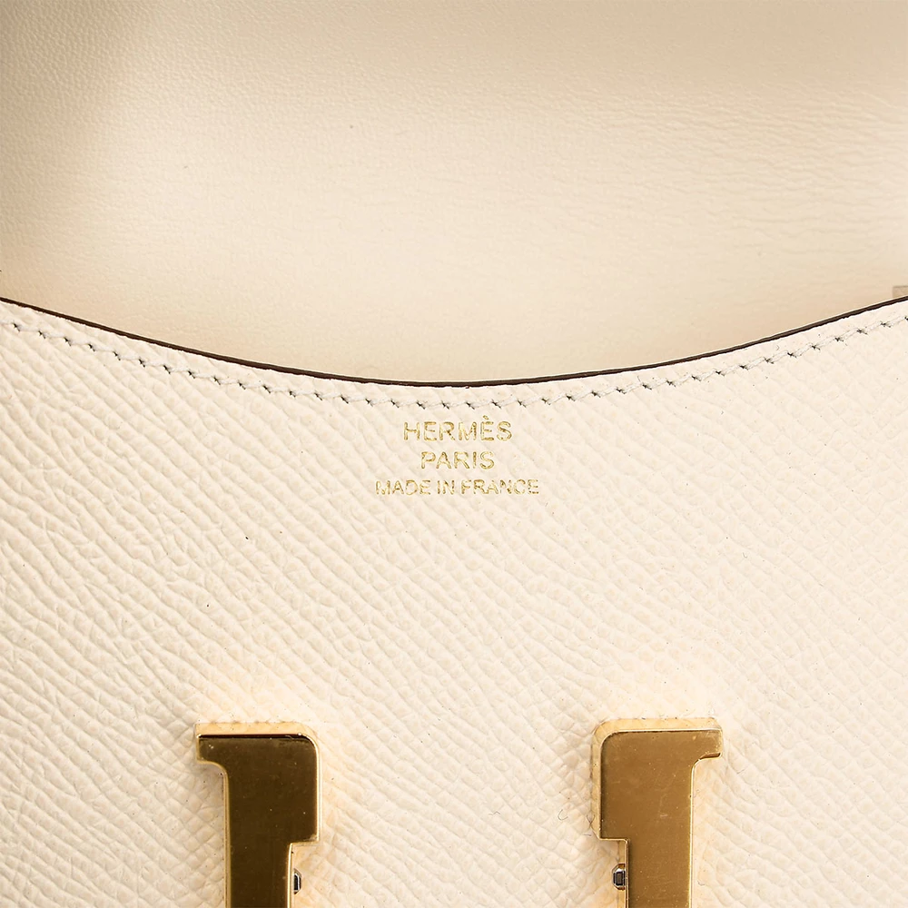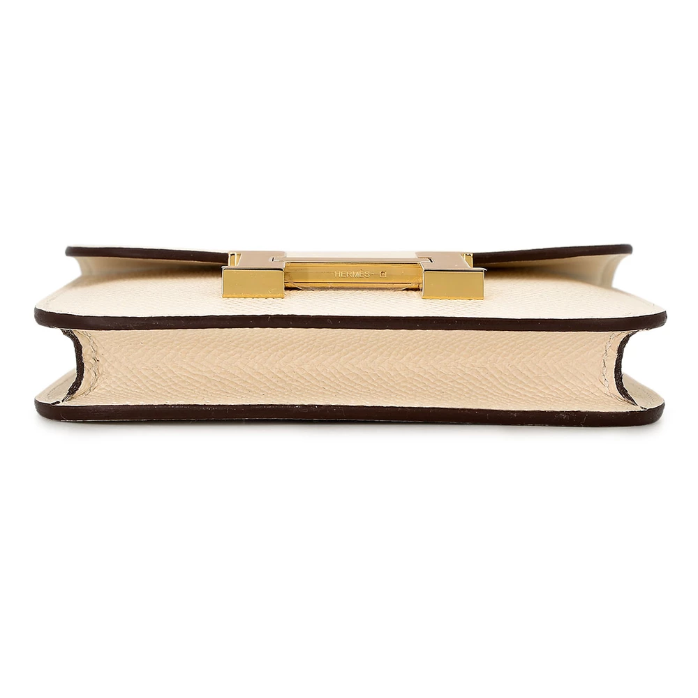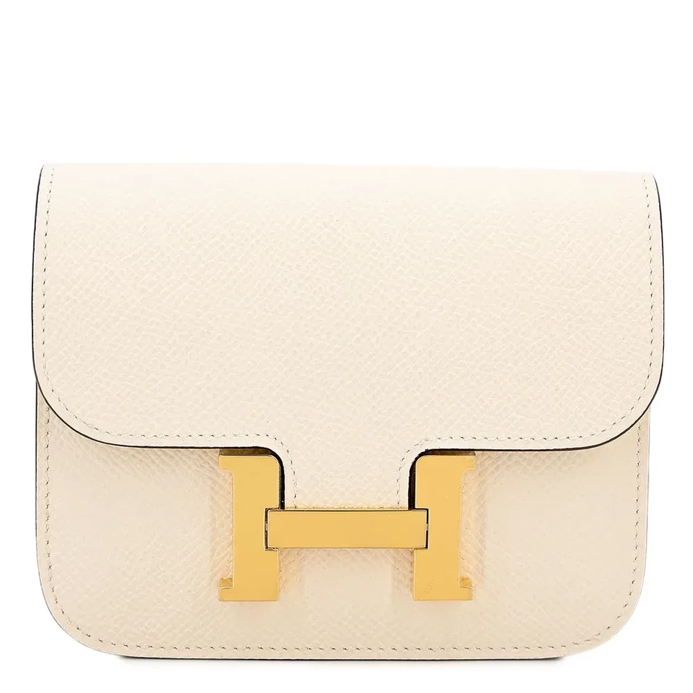 This Hermès Constance Slim Wallet in Nata (I2) is a refined and elegant accessory crafted from Epsom leather, known for its durability and structured feel. Accentuated with luxurious gold hardware, this wallet embodies timeless sophistication. Measuring approximately 13cm in width, 10cm in height, and 2cm in depth, it offers a sleek and compact design for effortless organization. Stamped with a B (2023), it is a testament to Hermès’ exceptional craftsmanship. This wallet includes its original box and a copy of the receipt and is currently located in Hong Kong.