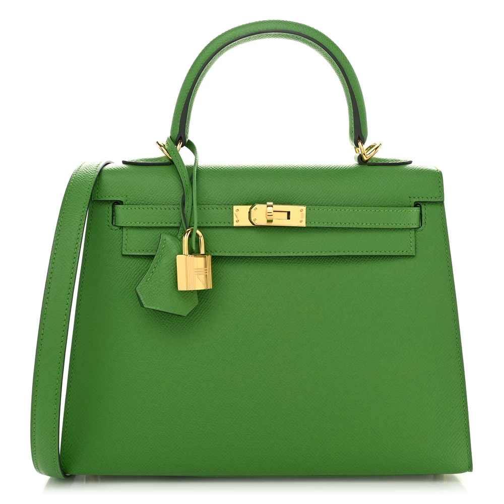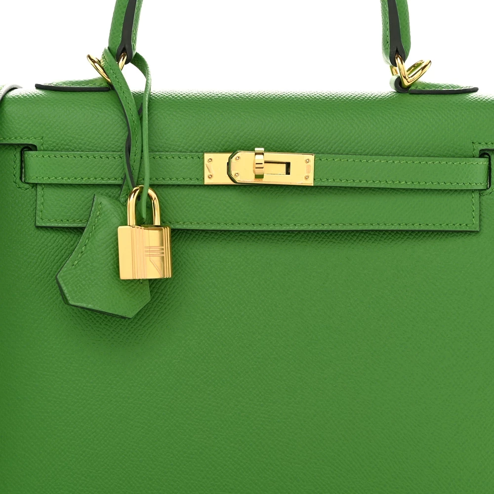 This Hermès Epsom Kelly Sellier 25 Vert Yucca is a striking and modern handbag in a fresh green shade. The Epsom leather provides a structured and polished finish, ensuring long-lasting durability. The Sellier stitching enhances its crisp, refined silhouette. Palladium hardware adds a contemporary contrast, making the color pop beautifully. This Kelly is a bold statement piece for those who love vibrant and elegant hues.