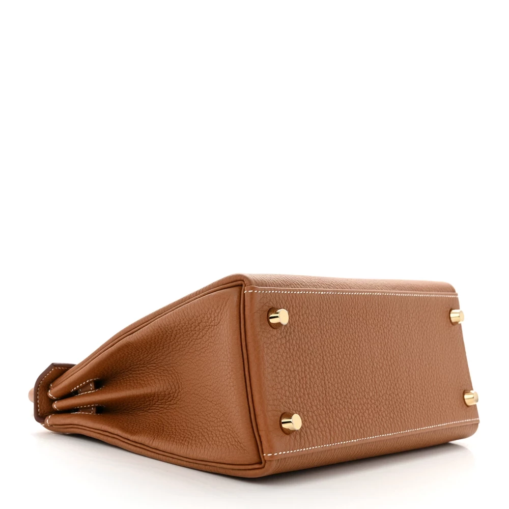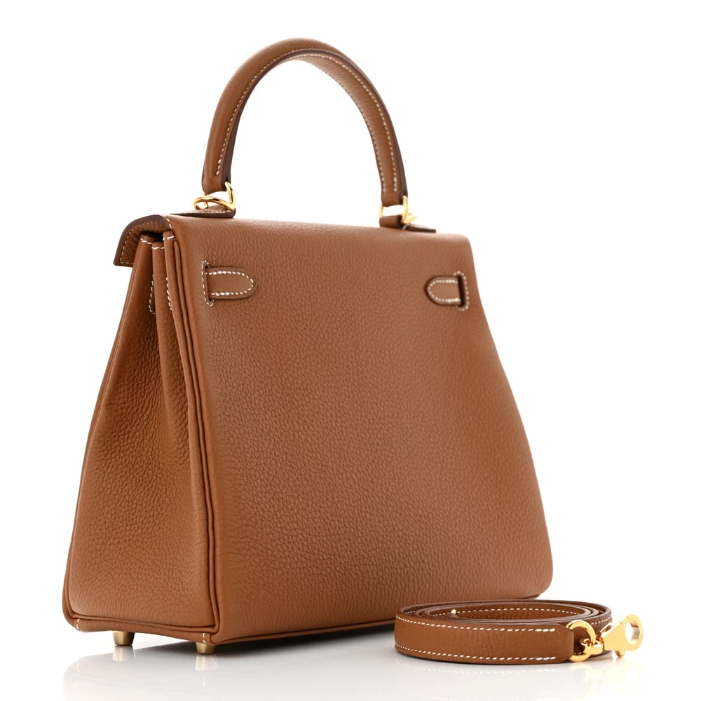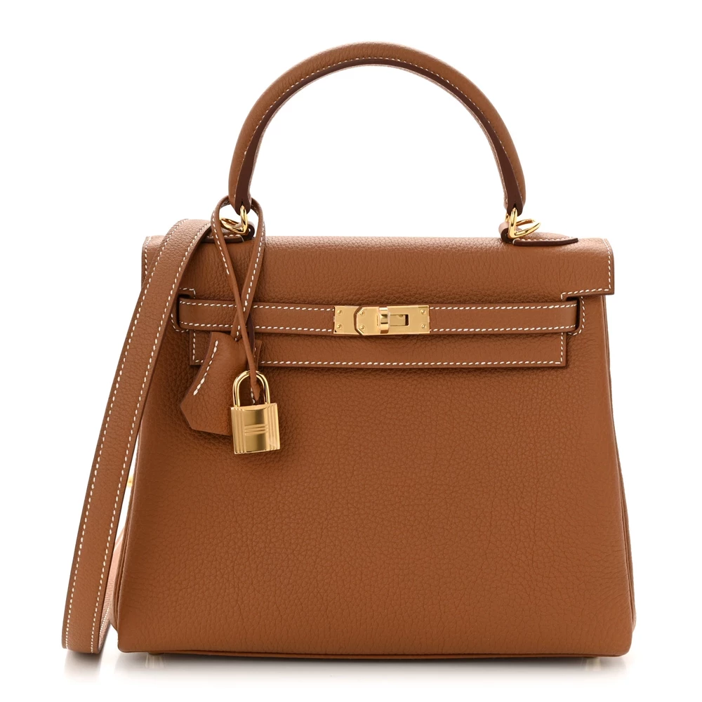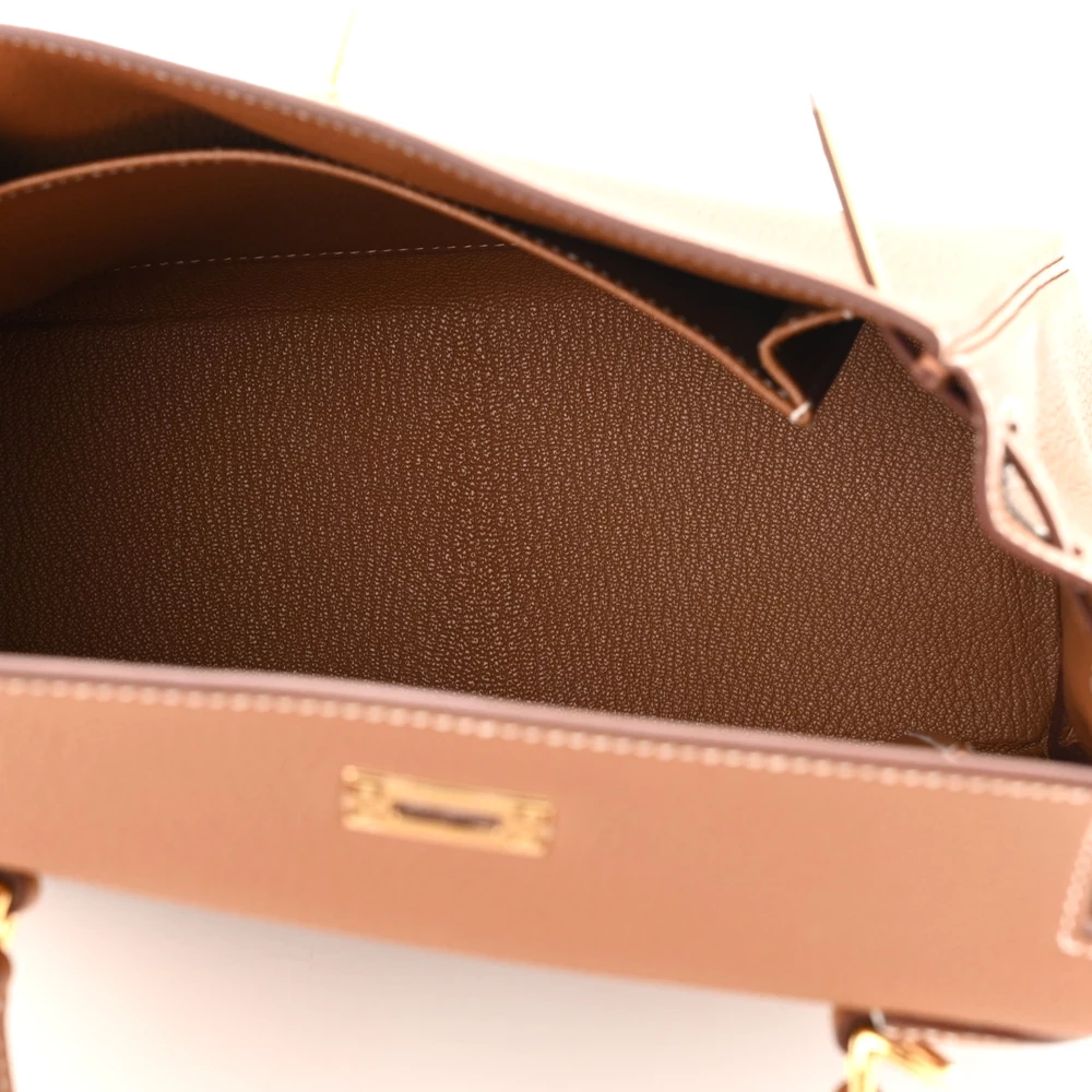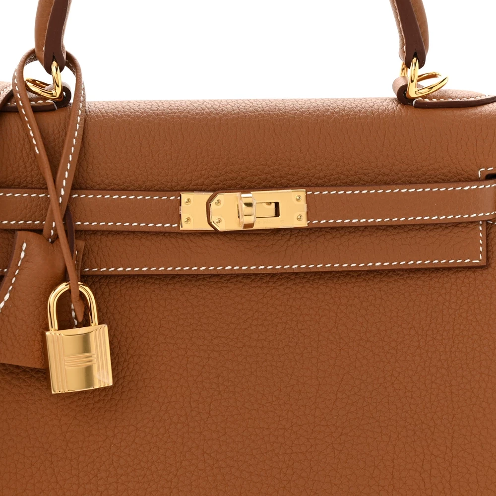 This Hermès Togo Kelly Retourne 25 Gold is a timeless and versatile handbag in the iconic Gold shade. The Togo leather offers a soft, grained texture while maintaining its shape beautifully. The Retourne construction gives it a slightly relaxed silhouette, perfect for everyday elegance. Palladium hardware provides a sleek contrast, enhancing its classic appeal. This Kelly is a must-have for those who appreciate enduring style.