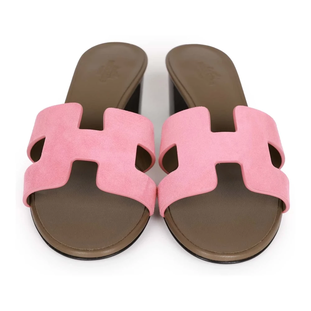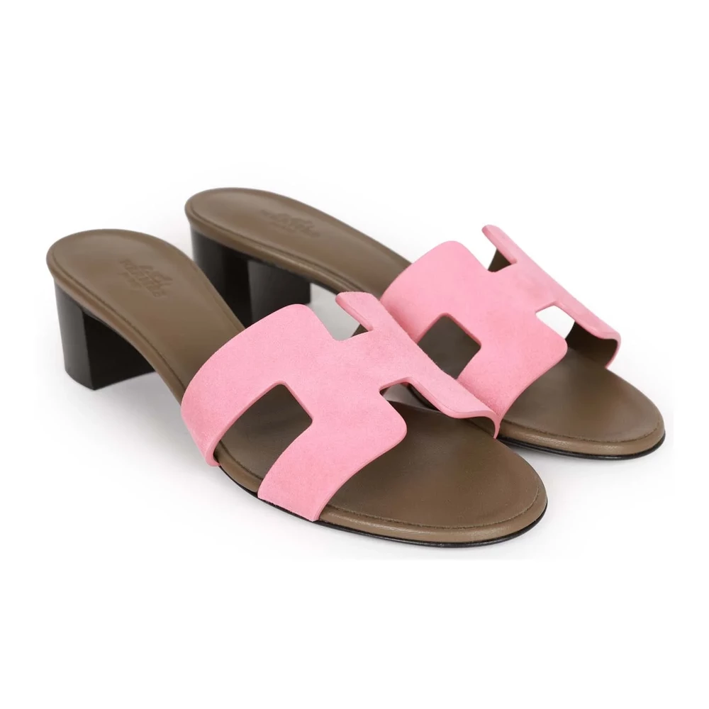 This Hermès Oasis sandal in rose suede offers a soft and refined look with a touch of sophistication. The rich suede texture enhances its elegance, while the mid-height heel provides just the right amount of lift. The warm pink hue makes it a versatile choice for both casual and dressy outfits. The signature “H” cutout remains a timeless detail. This sandal is perfect for those who love understated luxury with a delicate color palette.