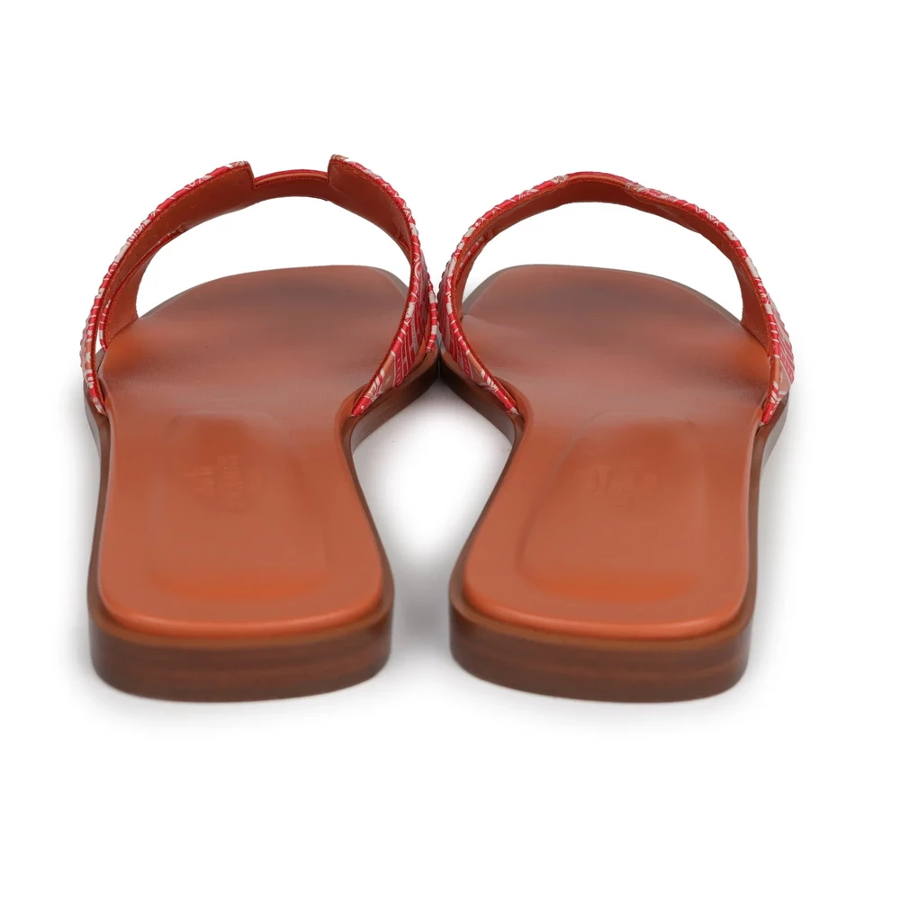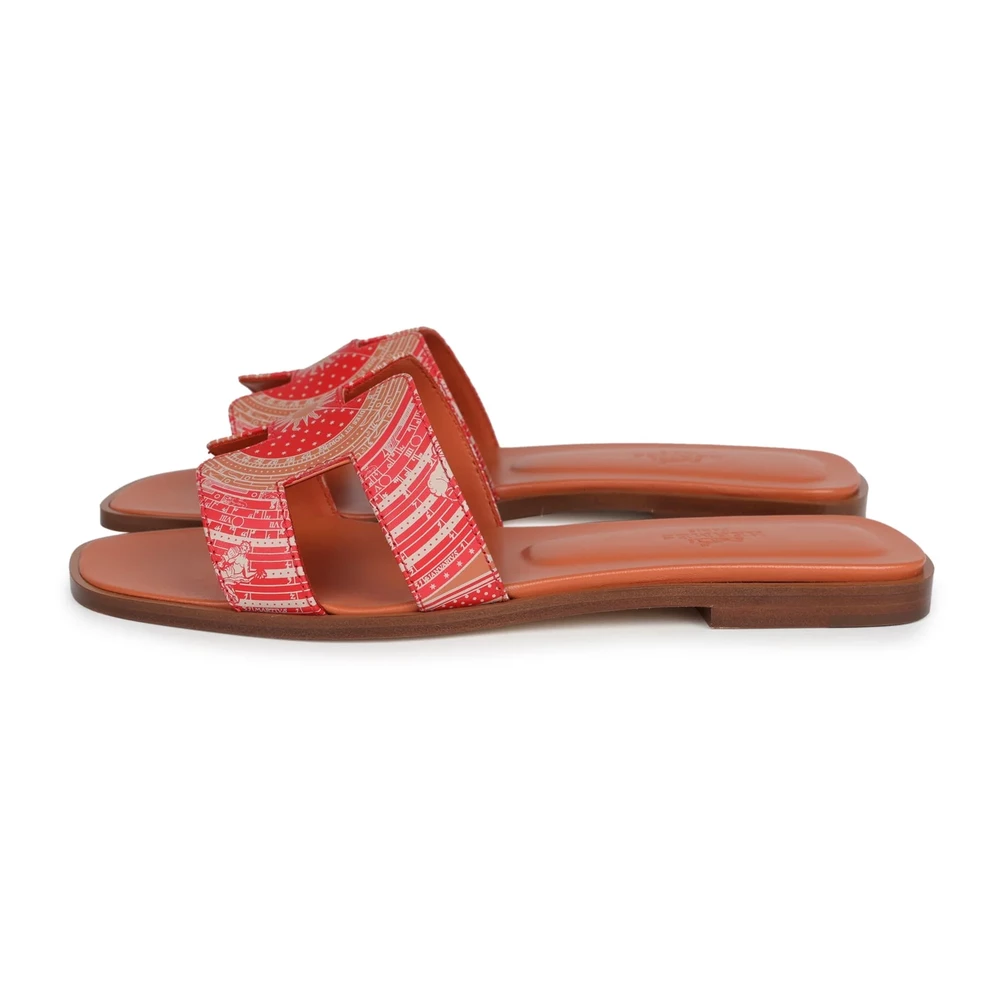 This Hermès Oran sandal in multicolored terracotta calfskin is a vibrant and eye-catching footwear option. The warm earthy tones blend beautifully, creating a striking yet elegant design. The supple calfskin leather ensures durability, while the signature “H” cutout remains a timeless feature. The flat sole allows for effortless wear. This sandal is ideal for those who enjoy bold colors with a refined finish.