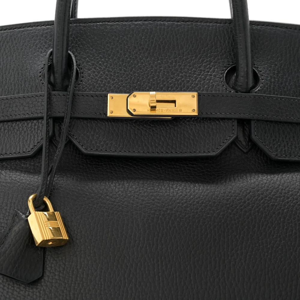 This Hermès Ardennes Birkin 40 in Black is a rare find, featuring the discontinued Ardennes leather, prized for its resilience and pronounced grain. The classic Black color exudes sophistication, making it suitable for both professional and casual settings. At 40 cm, this spacious bag caters to those who require extra room without compromising on luxury. The gold-plated hardware adds a touch of opulence, contrasting beautifully with the deep black leather. This Birkin is a testament to Hermès’ legacy of timeless design and functionality.