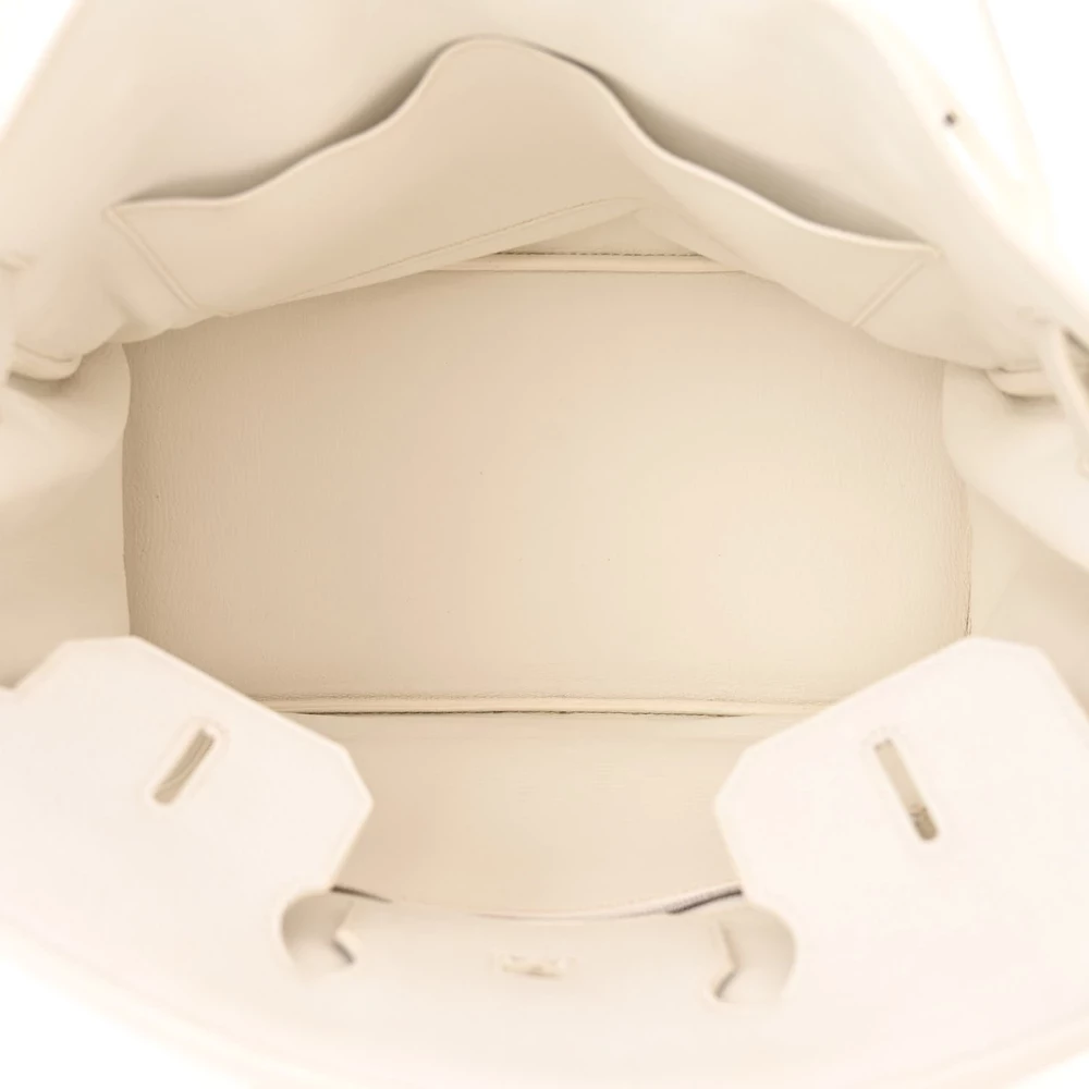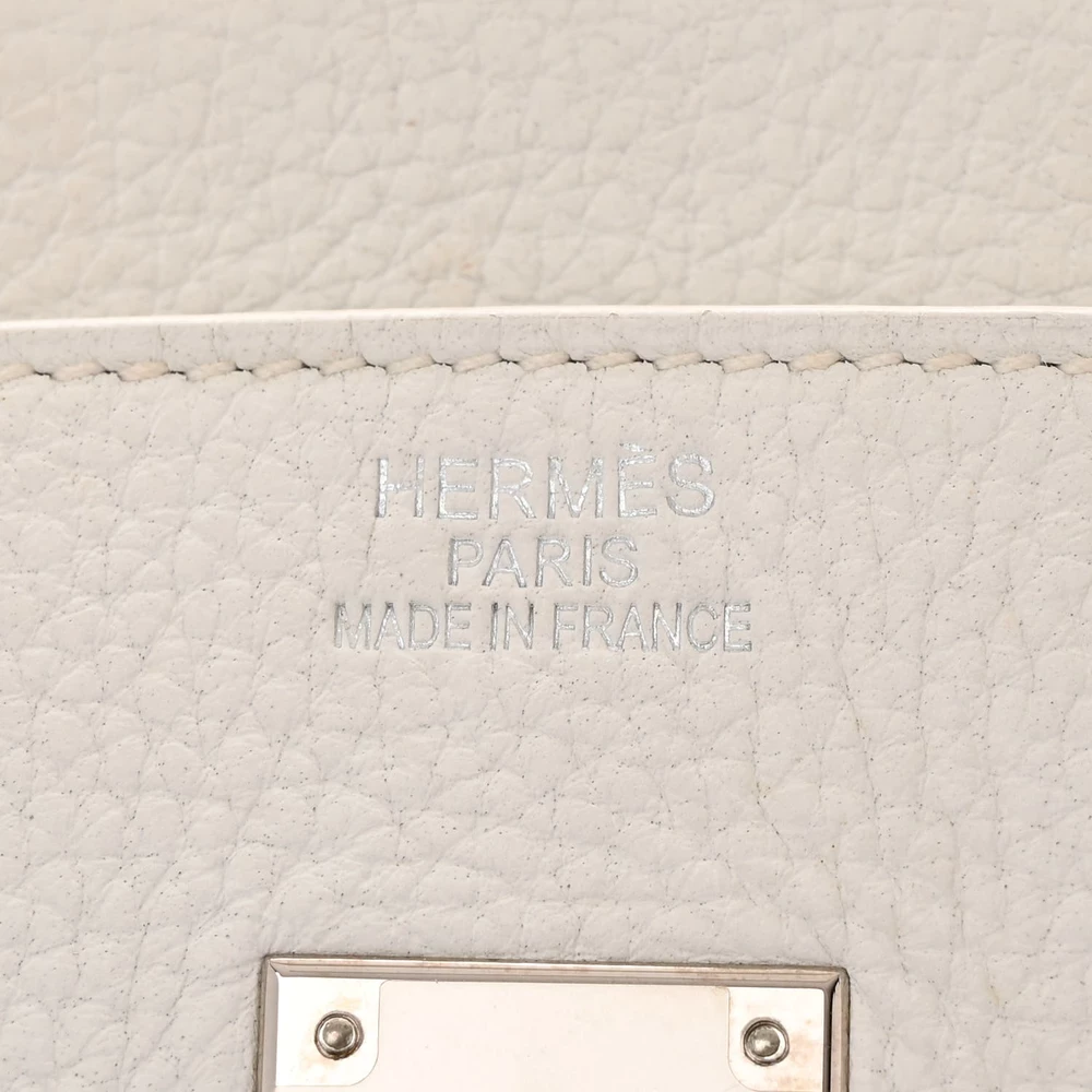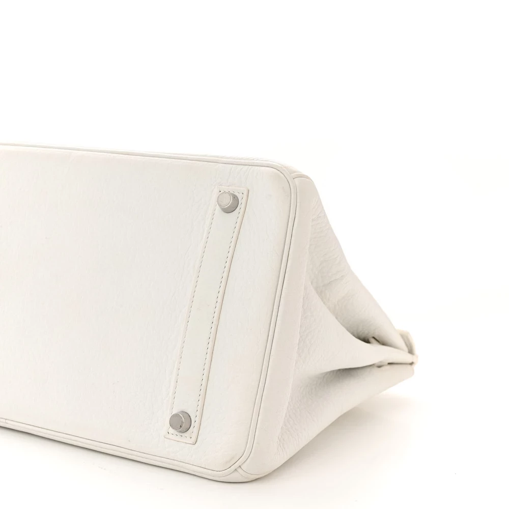 This Hermès Taurillon Clémence Birkin 35 in White is a pristine and elegant handbag in a crisp, clean shade. The soft Clémence leather gives it a relaxed yet luxurious feel, perfect for an effortlessly chic look. At 35 cm, it provides spaciousness while maintaining a refined silhouette. Palladium hardware adds a sleek contrast to the bright white tone. This is a timeless and sophisticated investment piece.