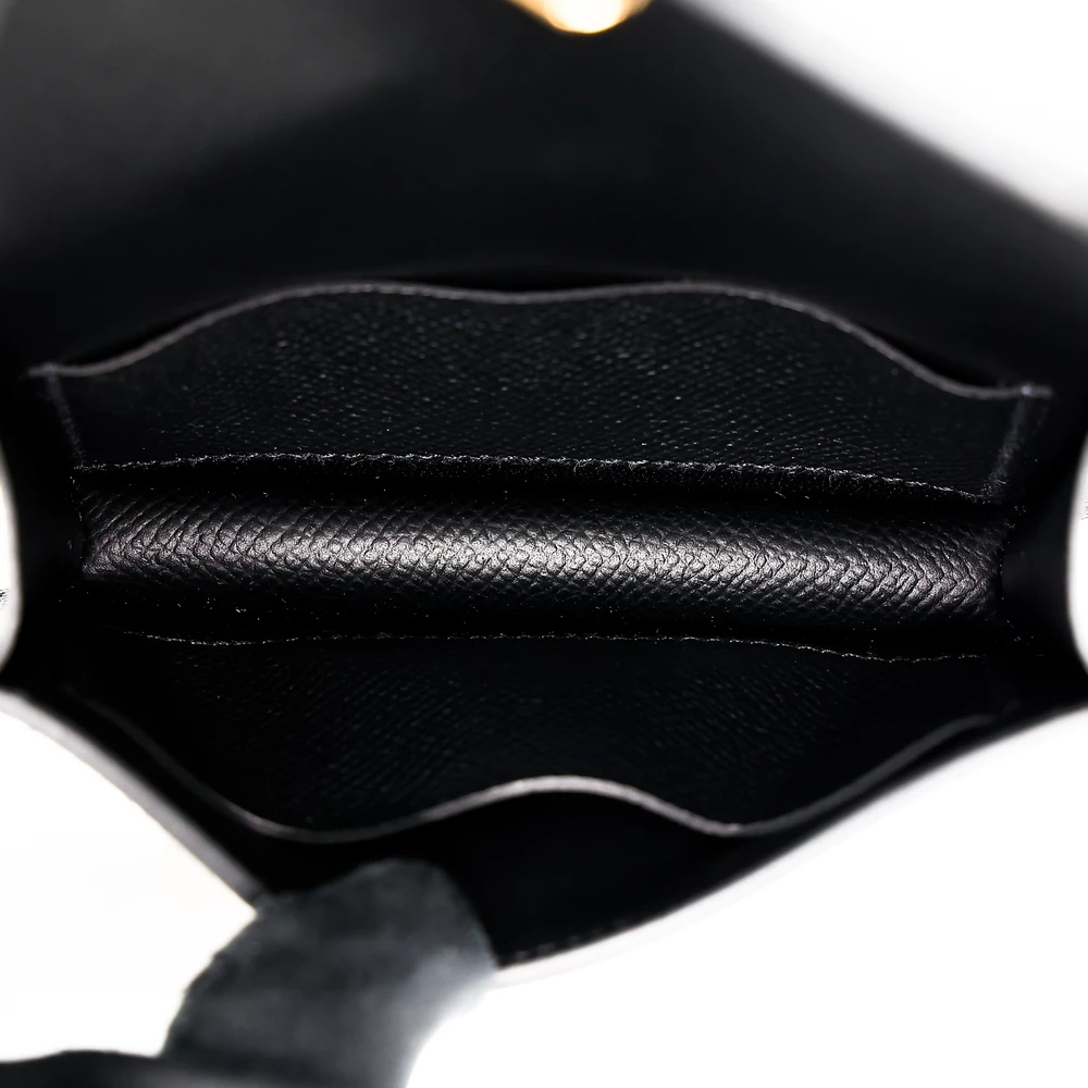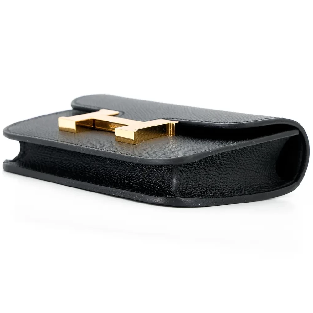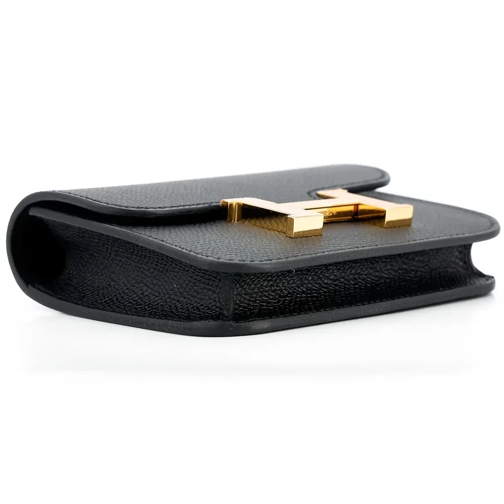 This Hermès Constance Slim Wallet is a refined and elegant piece, crafted from durable Epsom leather in classic Black (89). The sleek black exterior is enhanced by luxurious gold hardware, creating a timeless and sophisticated aesthetic. Designed with Hermès’ renowned craftsmanship, this wallet offers a slim yet functional structure, perfect for organizing essentials with style. Measuring approximately 13cm in width, 10cm in height, and 2cm in depth, it is a compact yet practical accessory. Accompanied by a dustbag, this exquisite wallet is available in Hong Kong, making it an excellent choice for collectors and luxury enthusiasts alike.