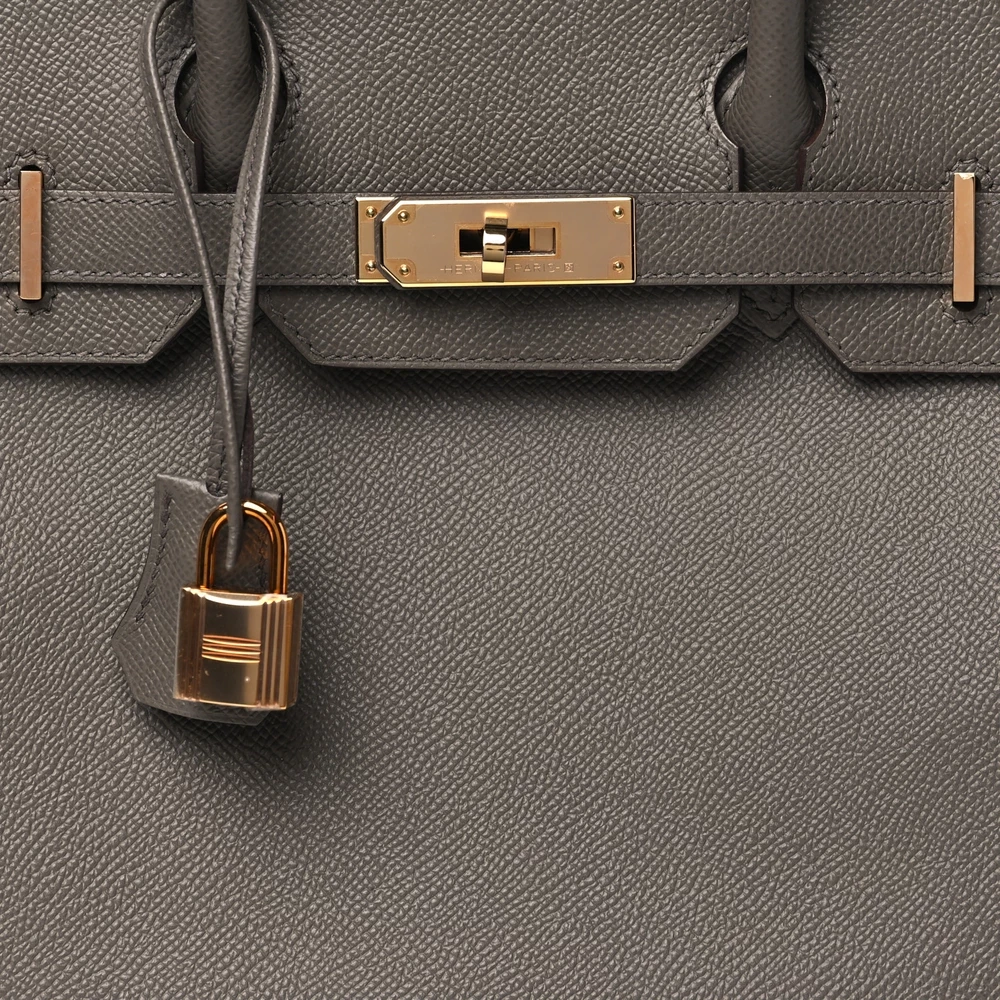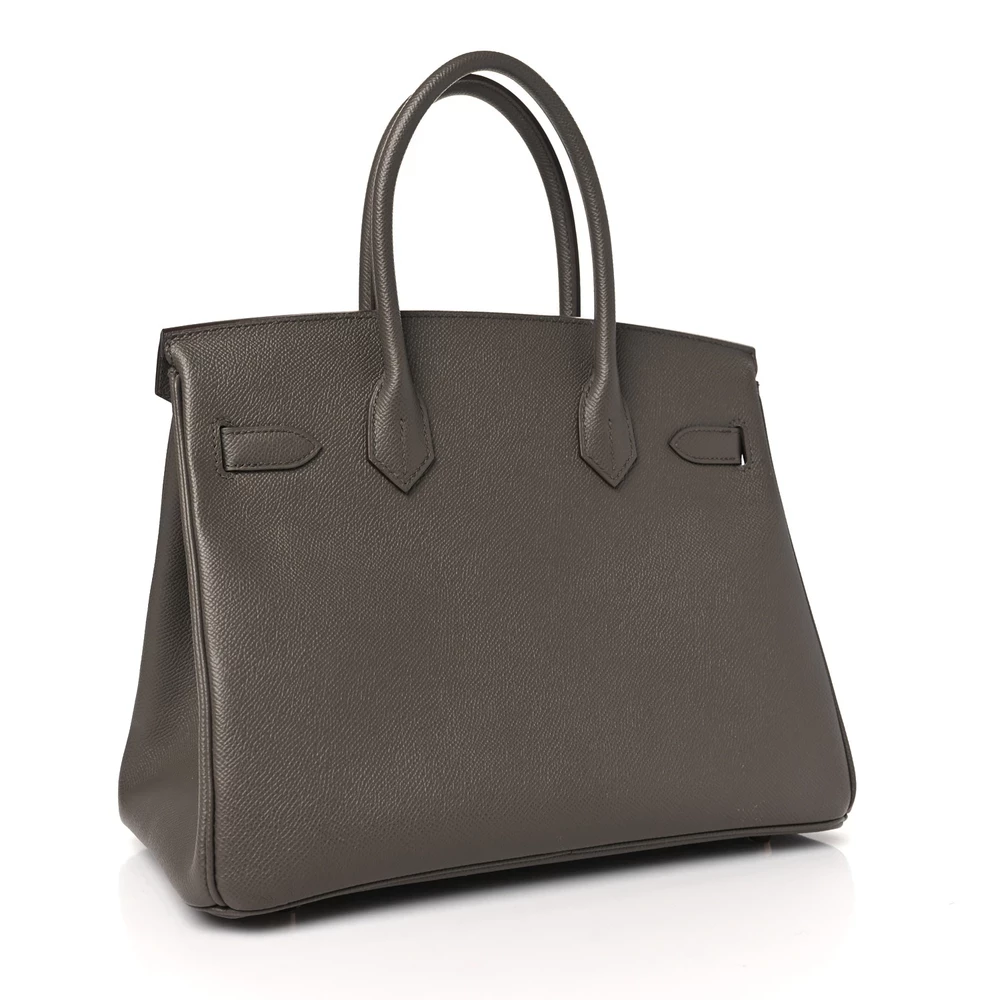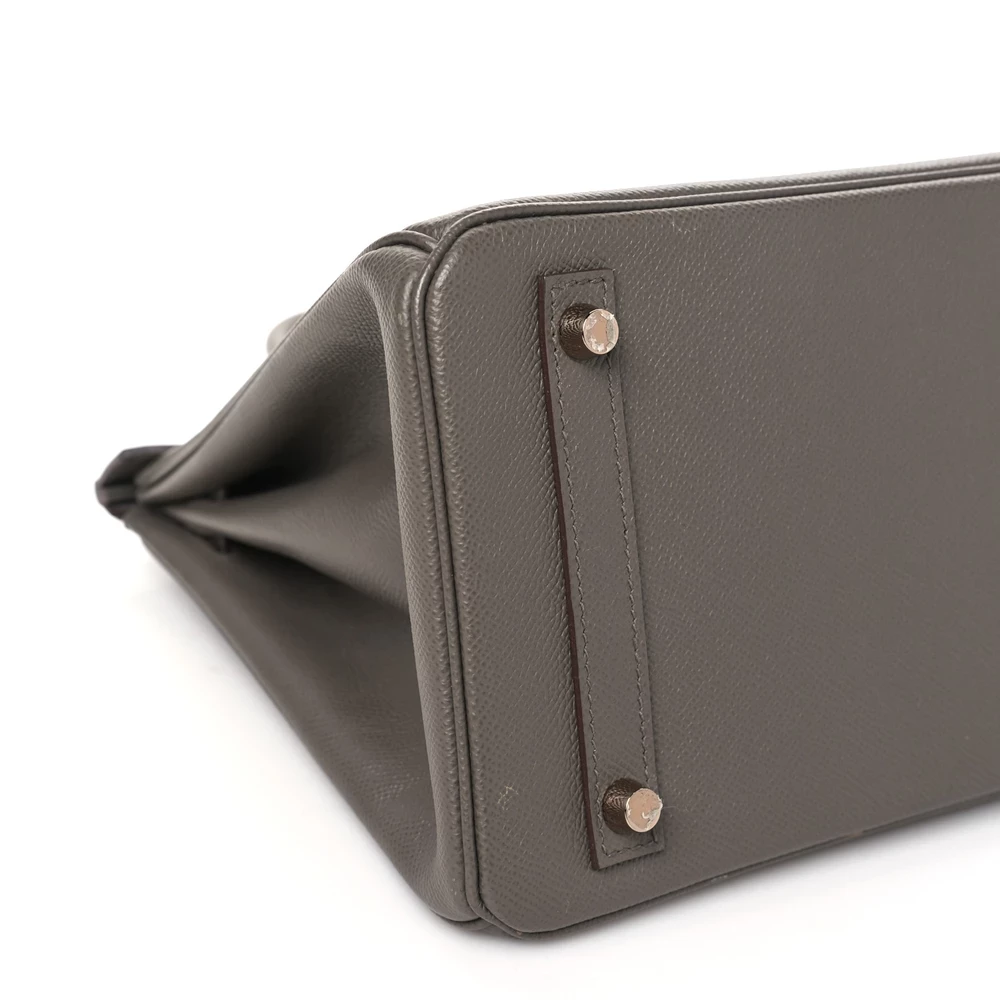 This Hermès Epsom Birkin 30 in Etain is a sophisticated handbag made from Epsom leather, appreciated for its embossed texture and structured form. The Etain (tin gray) color provides a neutral yet elegant appearance, suitable for various occasions. At 30 cm, it offers ample space for essentials while maintaining a sleek profile. The palladium hardware adds a modern touch, complementing the bag’s understated elegance. This Birkin reflects Hermès’ commitment to quality and timeless style.