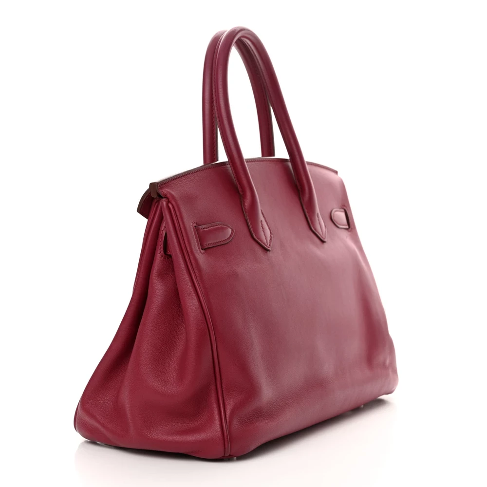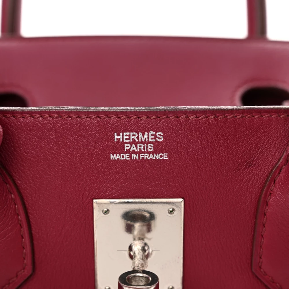 This Hermès Swift Birkin 30 in Rubis is a rich and sophisticated handbag in a deep red shade. The smooth Swift leather enhances the vibrancy of the Rubis hue while offering a soft and supple feel. At 30 cm, it is an ideal size for balancing function and style. Palladium hardware provides a sleek contrast, adding to its modern elegance. This is a refined and luxurious choice for those who love bold yet classic colors.