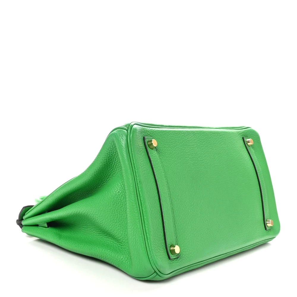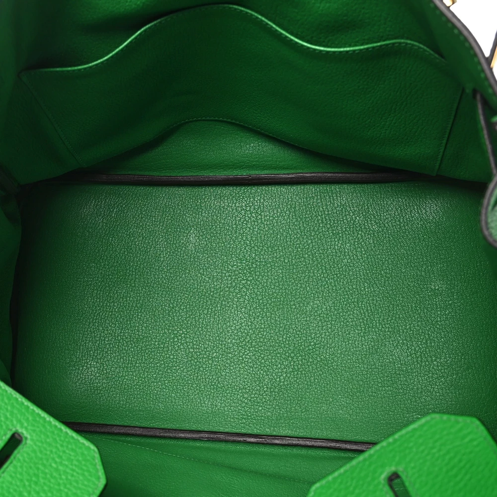 This Hermès Togo Birkin 35 in Bambou is a vibrant and spacious handbag crafted from Togo leather, appreciated for its grained texture and resilience. The ‘Bambou’ color is a lively green hue, adding a pop of color to any ensemble. At 35 cm, it offers ample space for daily essentials, ideal for those who prefer a larger bag. The palladium hardware provides a sleek contrast, enhancing its contemporary look. This Birkin showcases Hermès’ ability to combine bold colors with timeless design, making it a standout accessory.