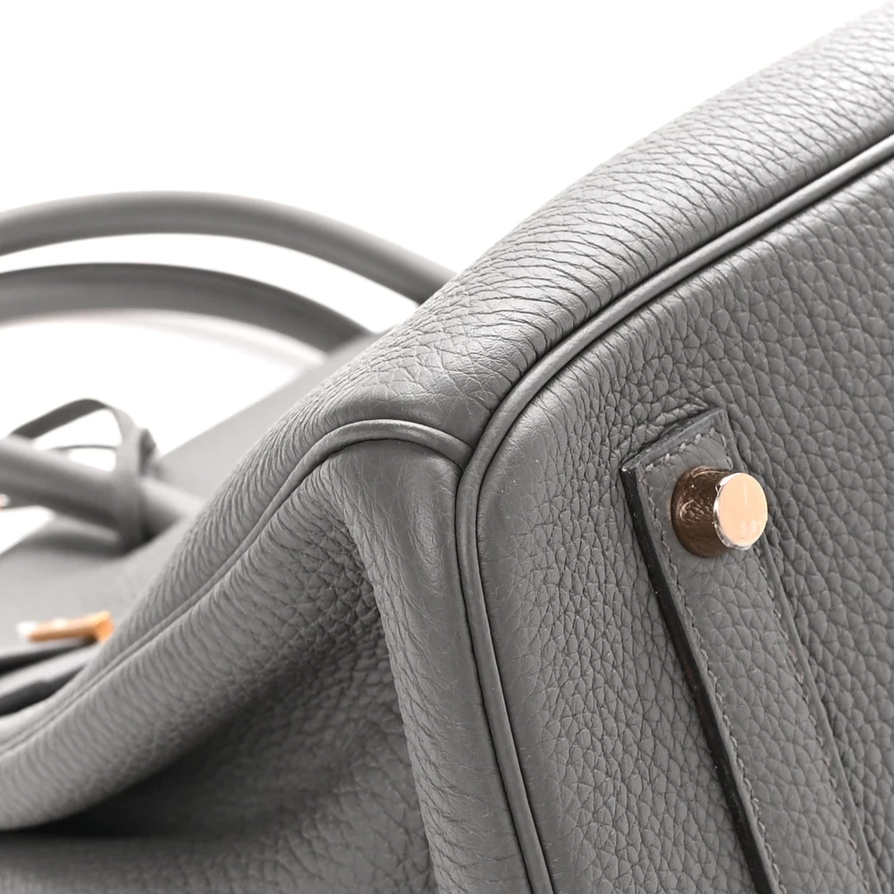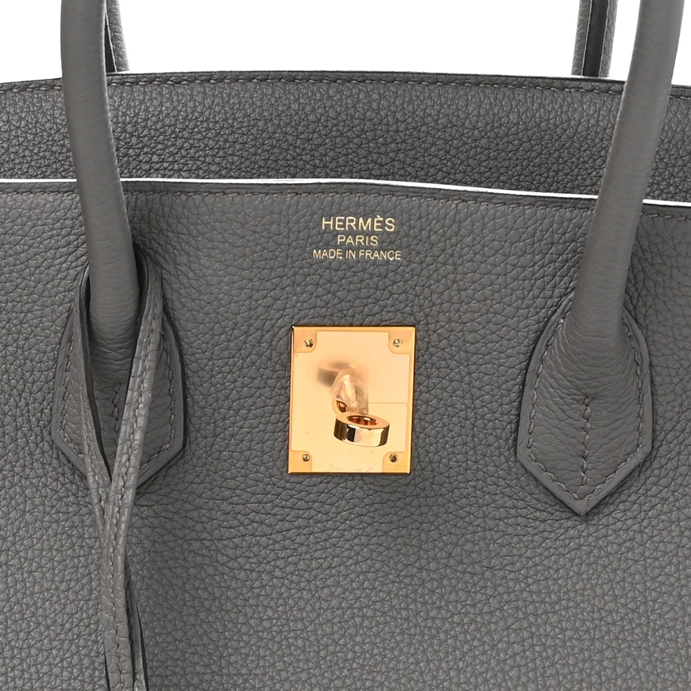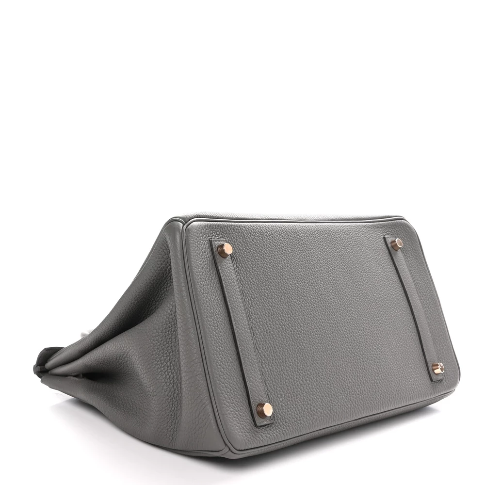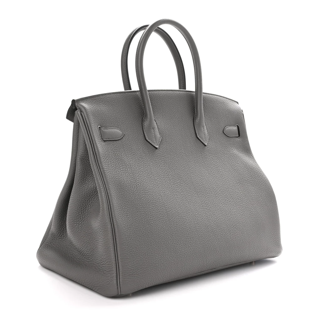 This Hermès Togo Birkin 35 in Étain is a sophisticated and modern handbag in a cool, medium gray shade. The Togo leather offers a slightly pebbled texture with excellent durability. With a spacious 35 cm size, this Birkin is ideal for those who need both style and function. Palladium hardware enhances the contemporary feel of the neutral gray tone. This is a perfect investment piece for any luxury handbag collection.