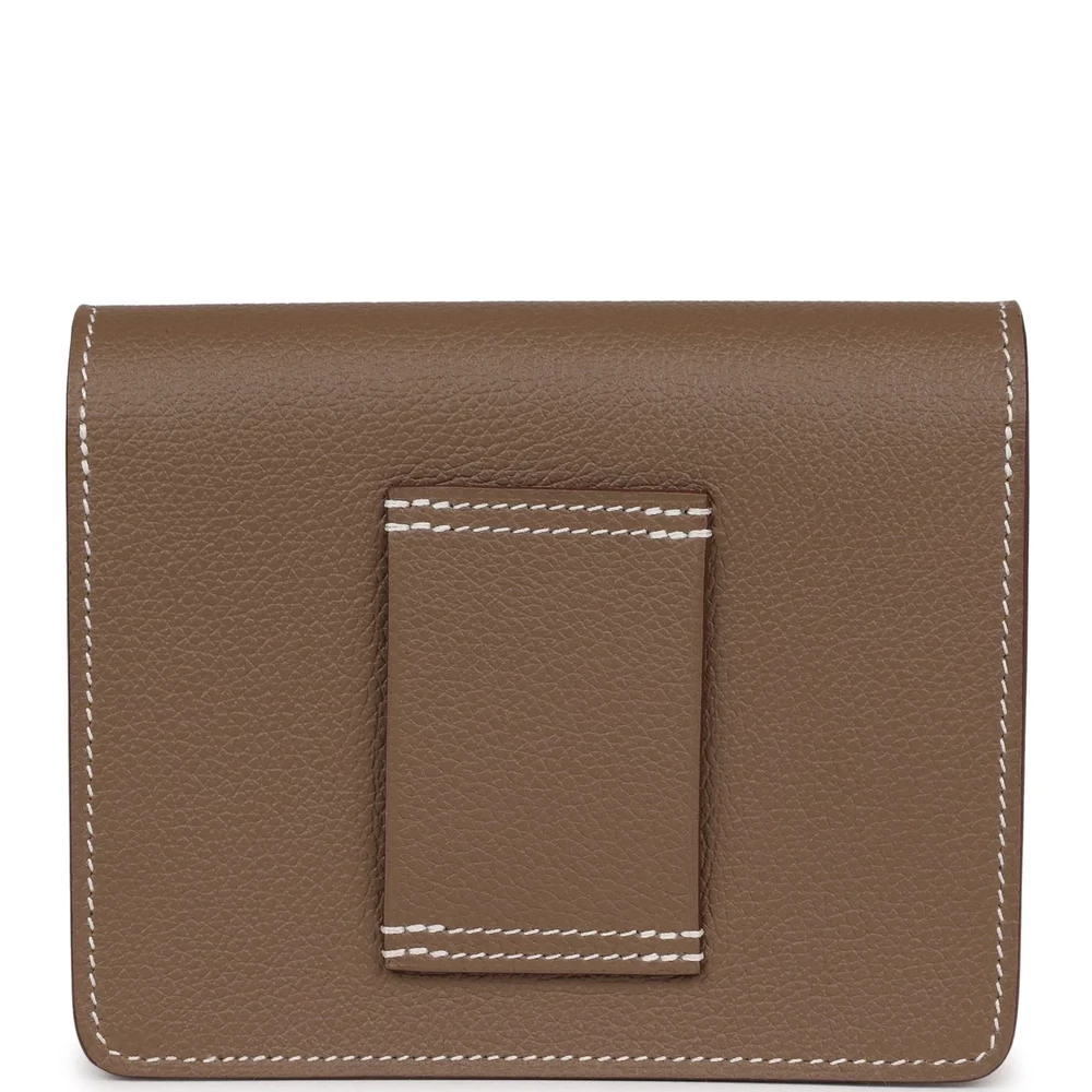 This Hermès Roulis Slim Wallet in Etoupe Evercolor leather is a sophisticated blend of luxury and functionality. The neutral Etoupe tone is beautifully paired with gold hardware, creating a warm and refined aesthetic. Designed with a slim yet spacious interior, it offers efficient organization without compromising on elegance. The Evercolor leather adds a soft yet structured texture, ensuring longevity and everyday durability. A timeless choice, this wallet embodies the essence of Hermès craftsmanship.