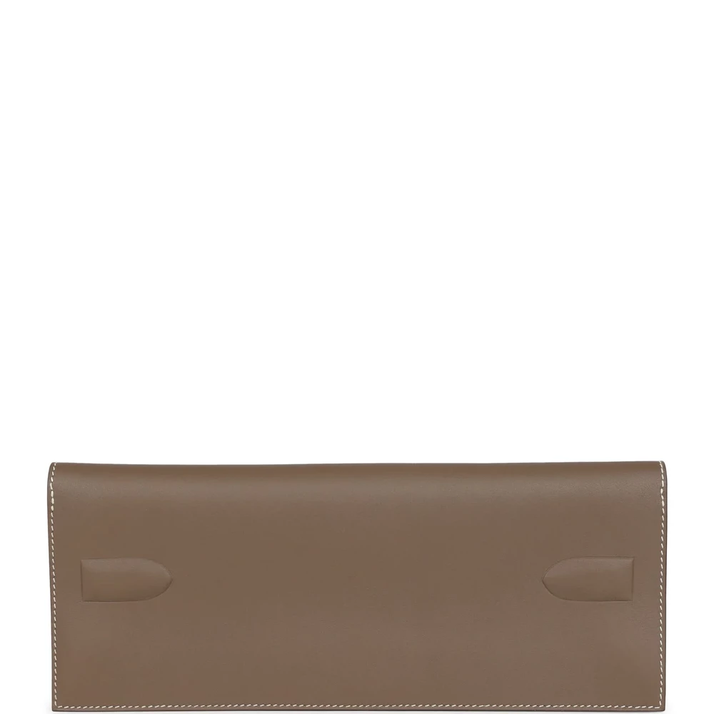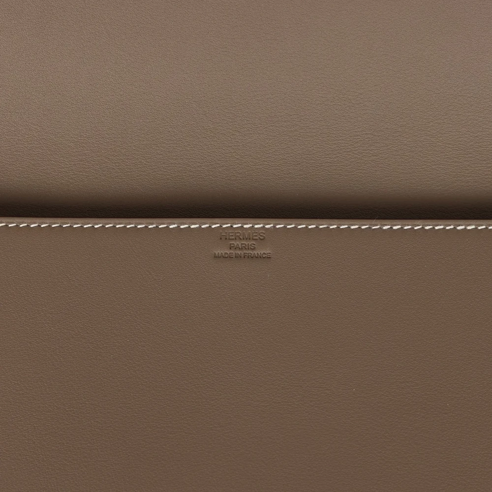 This Hermès Shadow Kelly Cut in Etoupe is a luxurious and modern choice. Crafted from supple Swift leather, it features a sleek and compact design. Its warm beige hue is perfect for adding a touch of calm to any outfit. The interior is designed for essentials, making it both stylish and practical. A must-have for any Hermès enthusiast. This bag is a true investment piece.