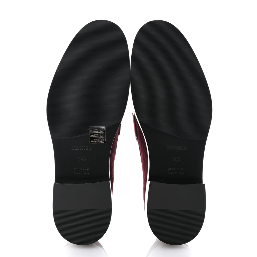 This Hermès Hot loafer in Marron Mahogany Suede & Goatskin is a sophisticated and timeless piece. The deep brown Suede & Goatskin enhances its classic appeal, while the elegant silhouette makes it a versatile addition to any wardrobe. Designed for both comfort and refinement, this loafer is ideal for those who appreciate understated luxury.