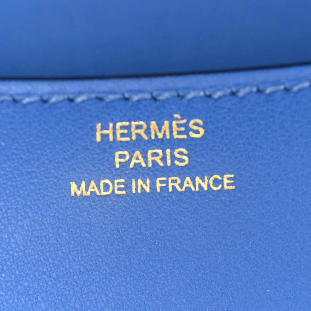 This Hermès Swift Constance 18 Bleu France is a sophisticated and striking handbag in a vivid royal blue shade. The Swift leather provides a smooth and supple texture, ensuring a refined aesthetic. The compact 18cm size makes it a perfect choice for a polished and stylish look. Palladium hardware enhances its sleek and contemporary appeal. This Constance is a vibrant and luxurious statement piece.
