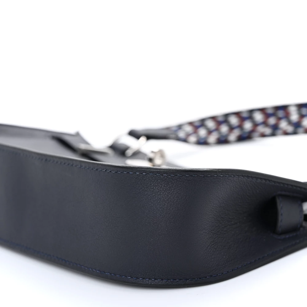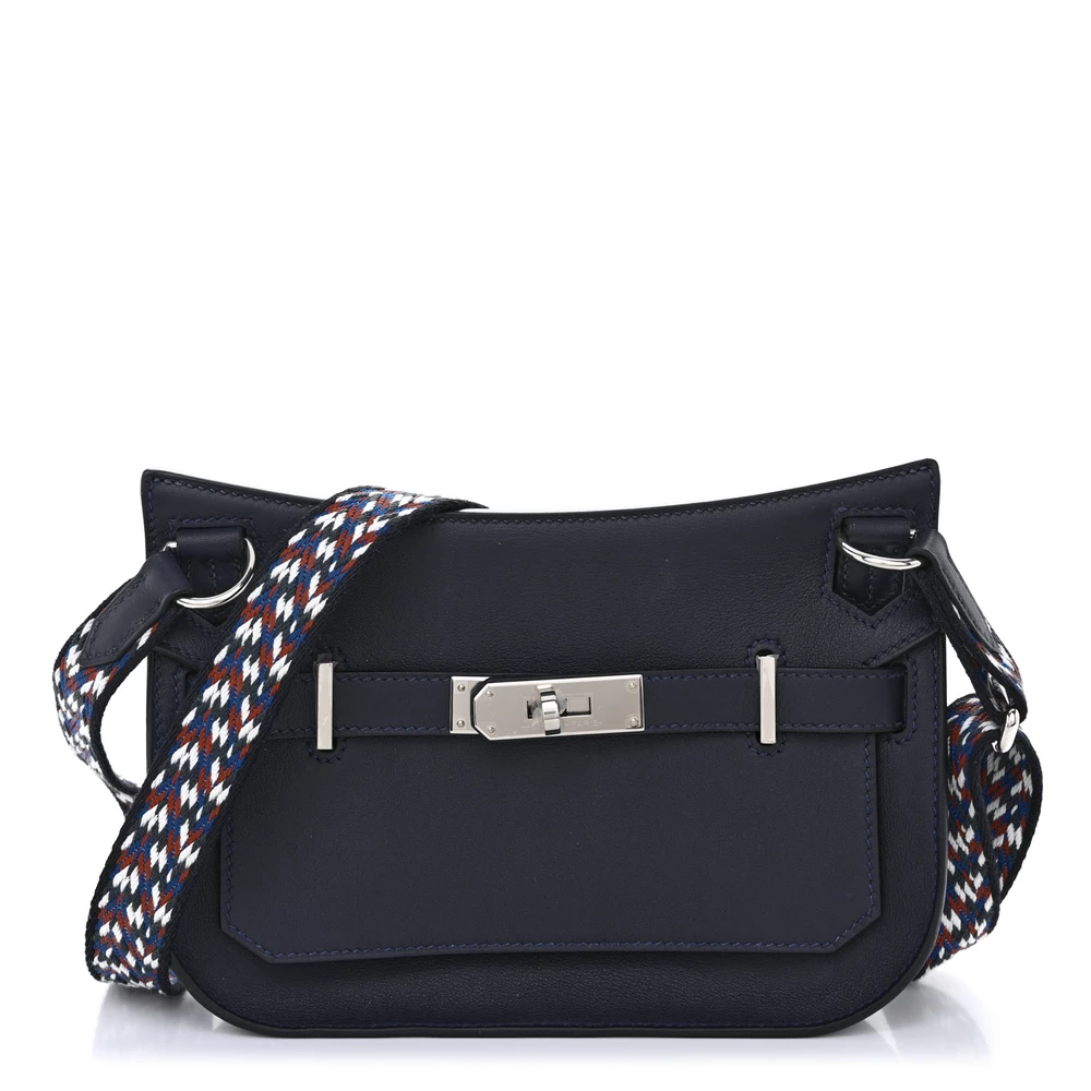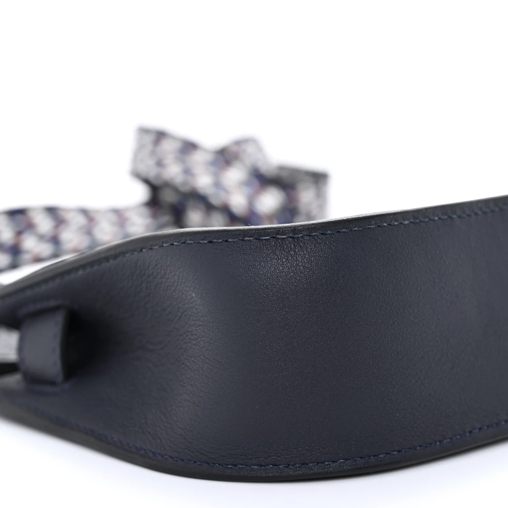 This Hermès Mini Jypsiere Zigzag in Caban, White, and Deep Blue Swift Leather is a striking and artistic bag featuring a bold geometric pattern. The Swift leather offers a smooth, luxurious texture, enhancing its refined aesthetic. The tri-tone design creates a contemporary and eye-catching look, while the adjustable strap ensures practicality. A unique collector’s piece with a modern edge.