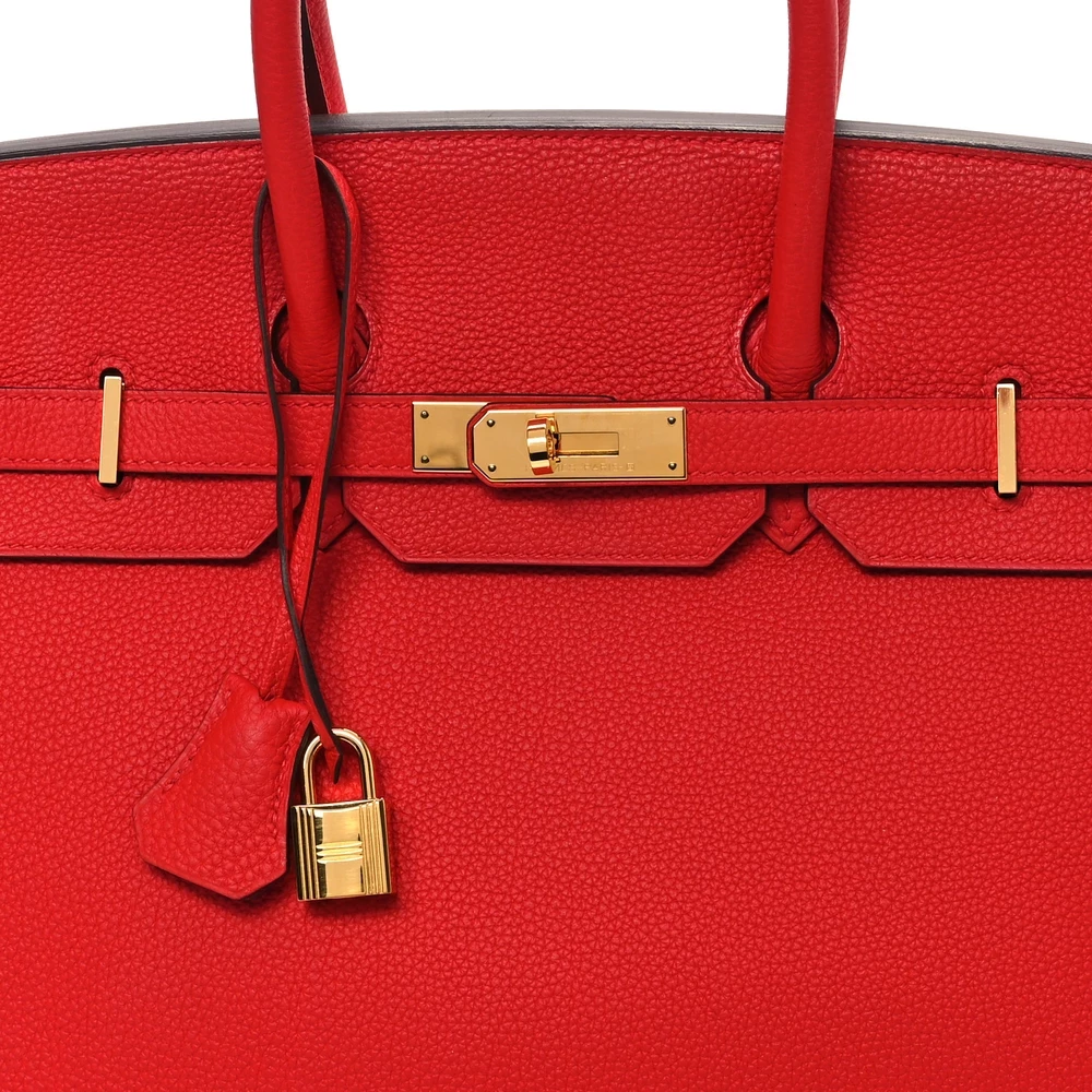 This Hermès Togo Birkin 35 in Rouge de Coeur is a striking and spacious handbag crafted from Togo leather, known for its durable and textured finish. The Rouge de Coeur (heart red) color adds a passionate and bold touch, making it a standout accessory. At 35 cm, it offers generous space, ideal for those who prefer a larger handbag. The palladium hardware provides a sleek contrast, enhancing its modern look. This Birkin exemplifies Hermès’ dedication to blending vibrant colors with classic design, resulting in a timeless yet eye-catching piece.