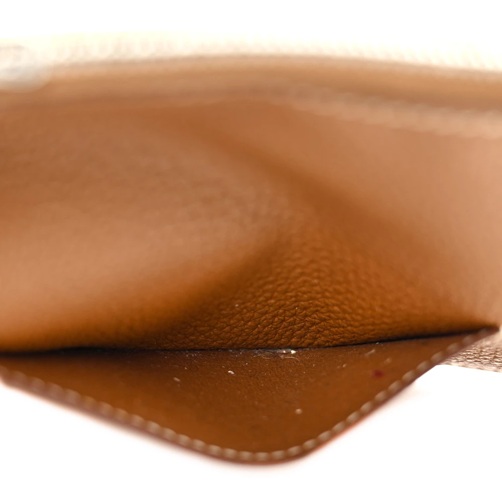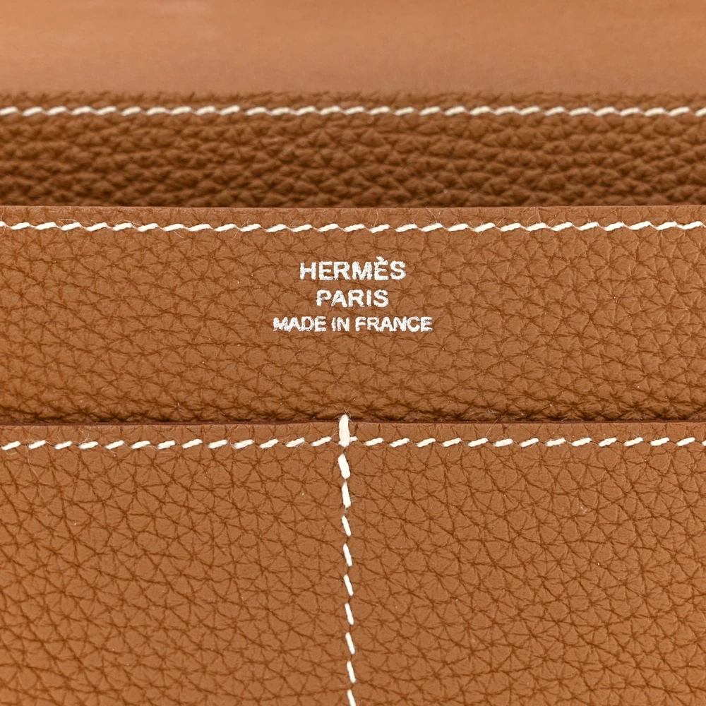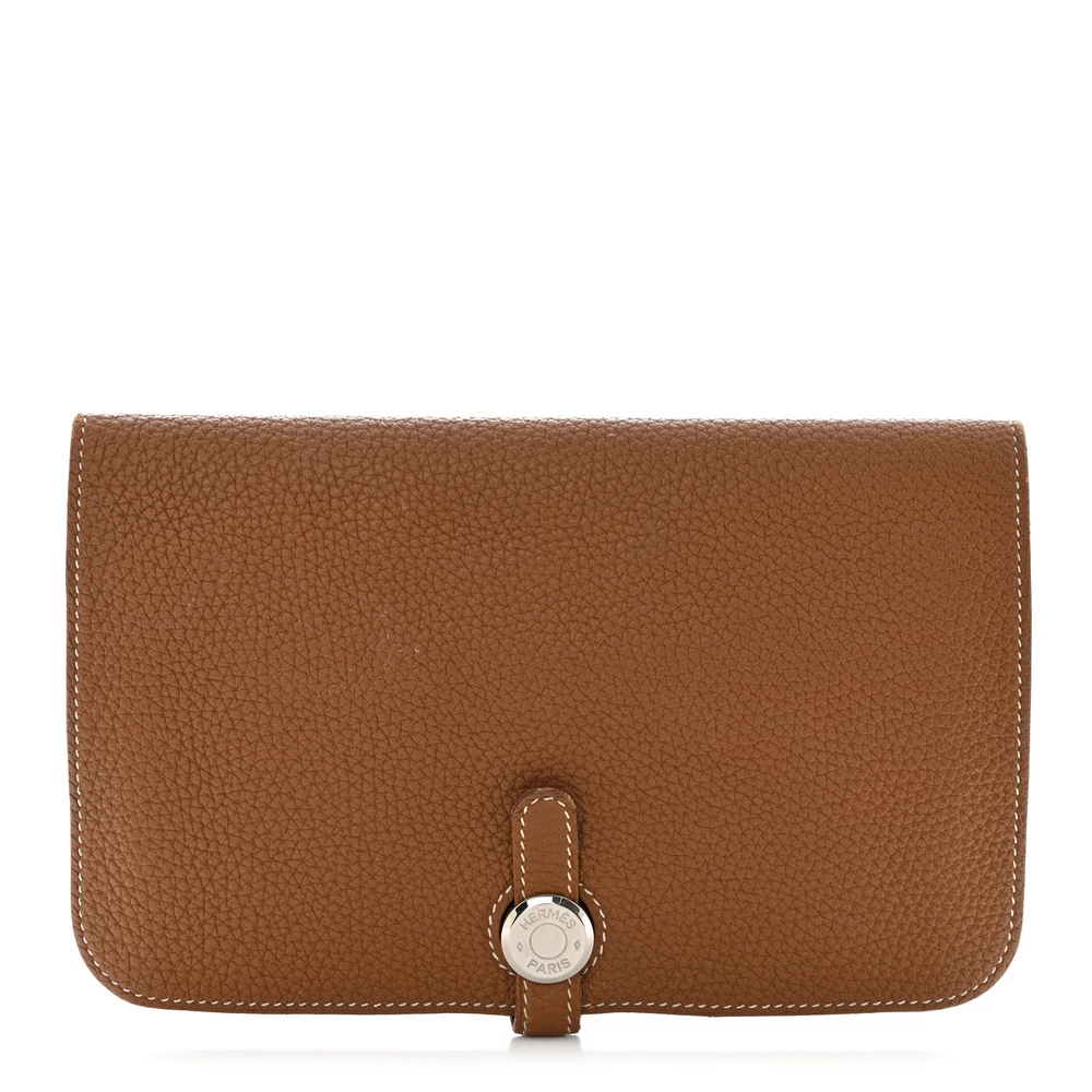 This Hermès Togo Dogon Duo Wallet in Gold is a refined and practical accessory that exemplifies luxury and functionality. Crafted from soft yet durable Togo calfskin leather, the wallet is finished in a warm light brown hue, Gold, which adds a timeless elegance. The wallet opens with a sleek palladium closure, revealing a thoughtfully designed interior with multiple pockets for cards, a coin pocket, and a removable insert for added organization. Perfect for those who appreciate understated sophistication, this wallet is a versatile and stylish addition to any collection.