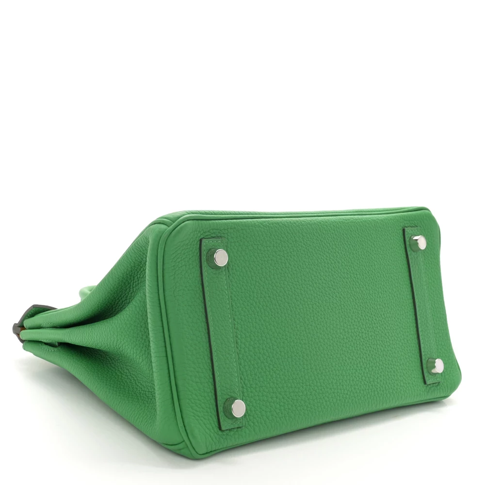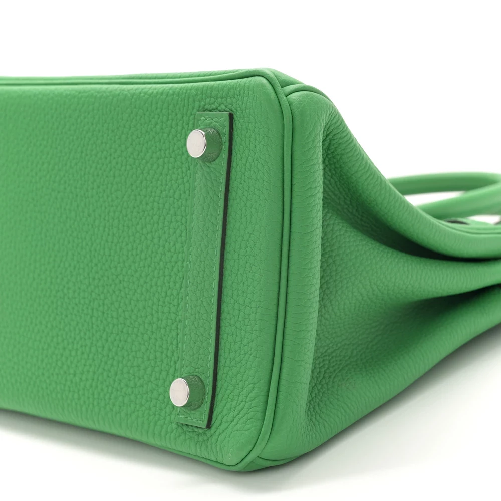 This Hermès Togo Verso Birkin 25 Bambou Caramel is a stunning bi-color handbag with a unique contrast of green and brown. The Togo leather’s supple texture makes it a refined yet durable choice. The compact 25 cm size ensures a sleek and modern aesthetic. Gold hardware enhances the rich tones, creating a harmonious blend of vibrancy and warmth. This Birkin is a true collector’s piece with a playful yet sophisticated charm.