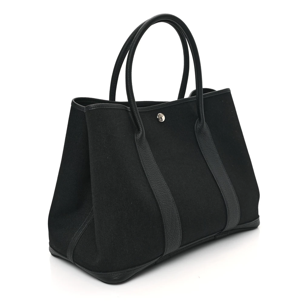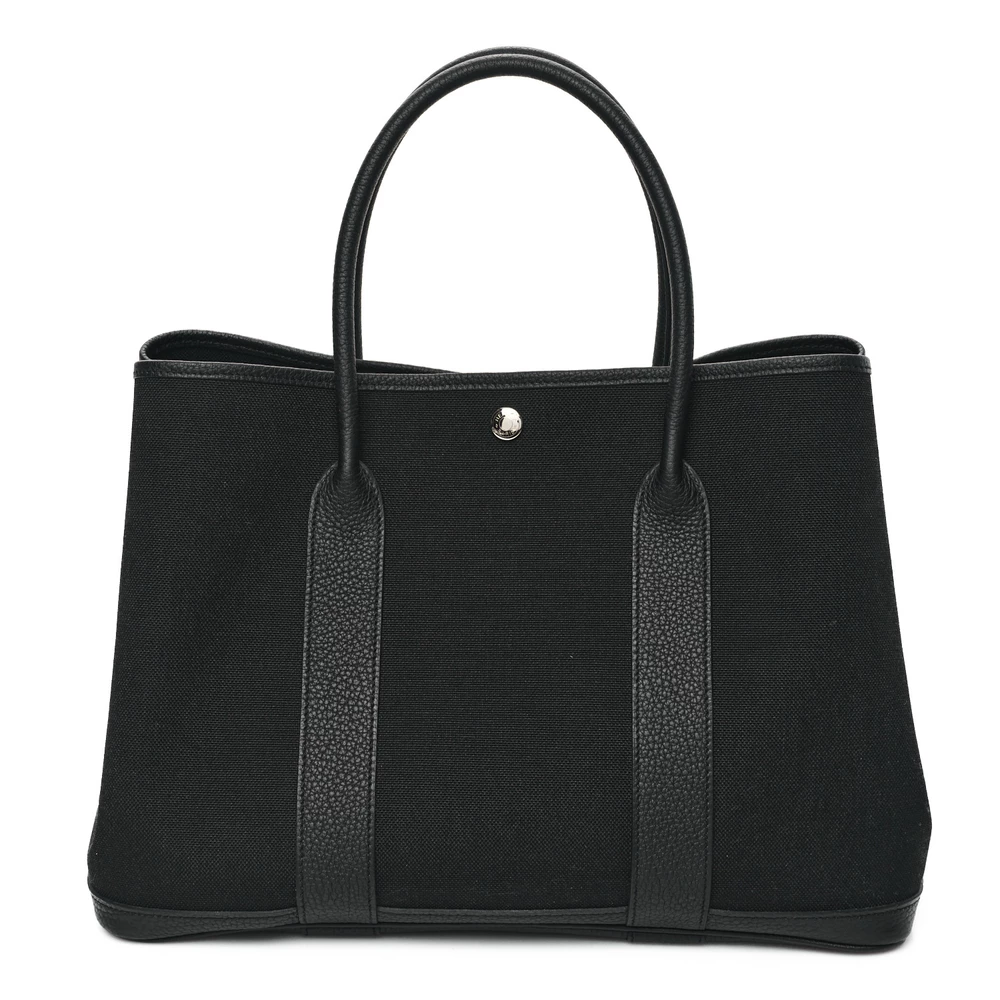 This Hermès Garden Party 36 MM in Black Toile & Negonda Leather is a sophisticated and functional tote with a blend of durable canvas and luxurious leather. The Toile fabric offers a lightweight feel, while the Black Negonda leather trims add structure and elegance. This design is perfect for a polished yet practical look.