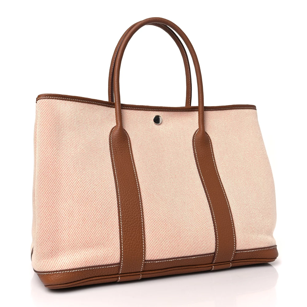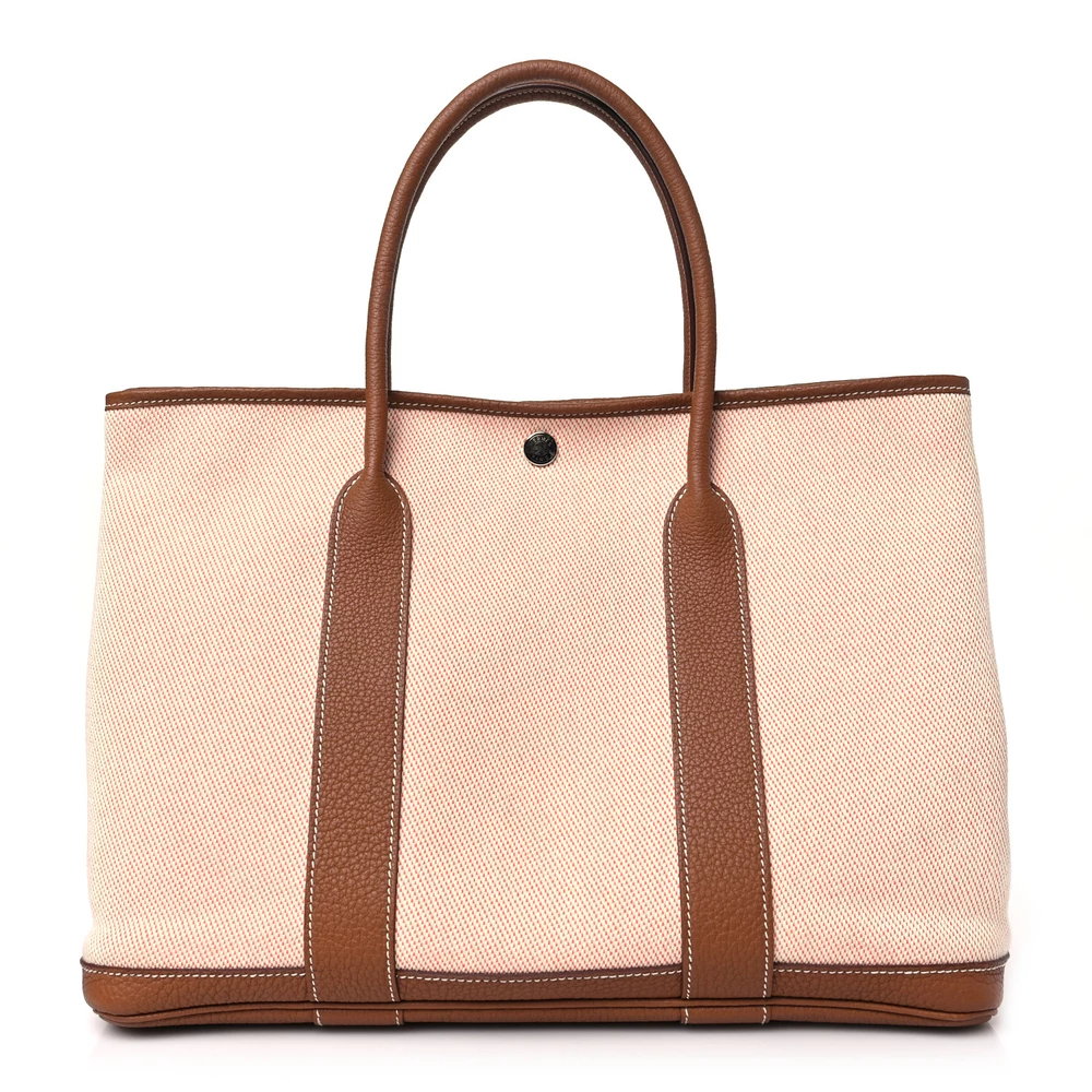 This Hermès Garden Party 36 MM in Ecru, Desert, and Gold Twill H & Negonda Leather is a refined and textured tote with an elegant mix of neutral tones. The Twill H fabric provides a soft yet structured finish, while the Negonda leather trims add durability and luxury. Its subtle contrast of warm hues makes it a stylish and timeless choice.