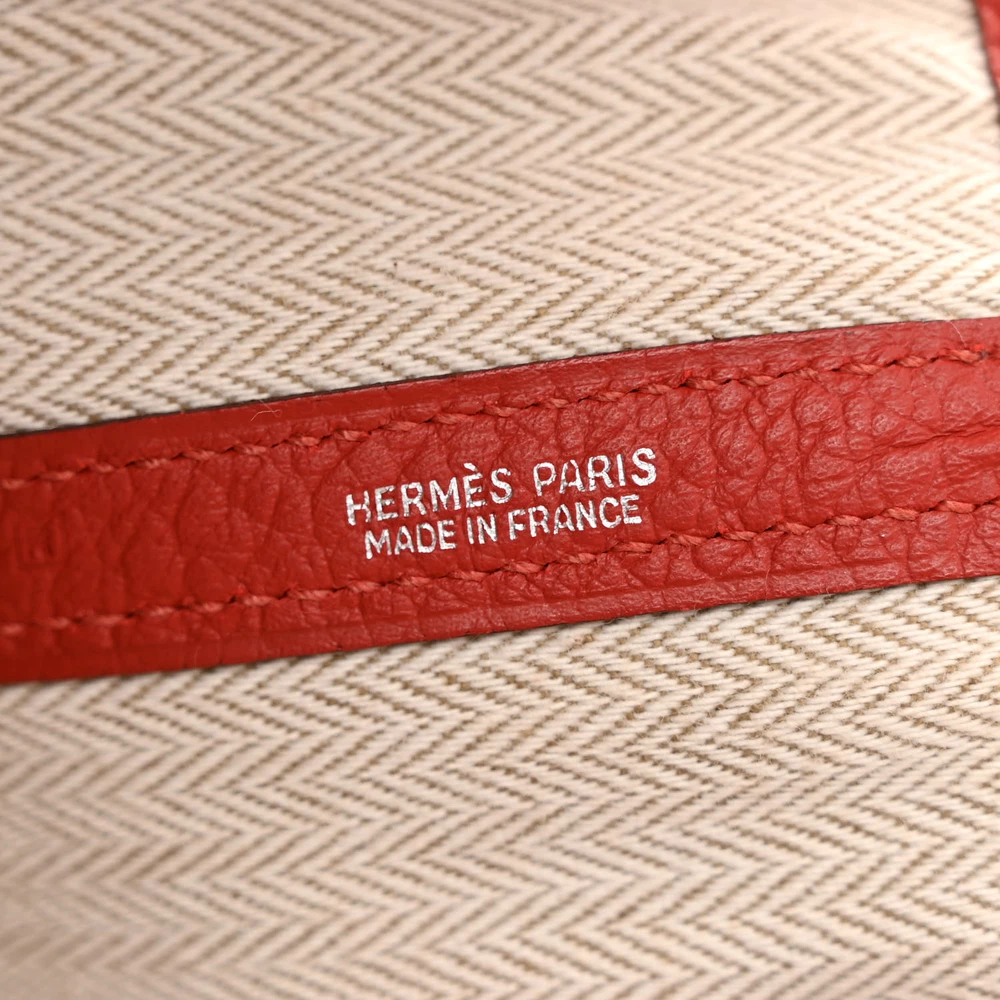 This Hermès Garden Party 36 MM in Rouge Duchesse Vache Country Leather is an elegant and bold tote in a striking red hue. The Vache Country leather provides a slightly structured yet soft finish, ensuring both durability and a refined aesthetic. Its spacious interior allows for easy organization of daily essentials. The minimalist design, enhanced by palladium snap closures, keeps it sleek and sophisticated. This rich color adds a powerful and stylish touch to any outfit.