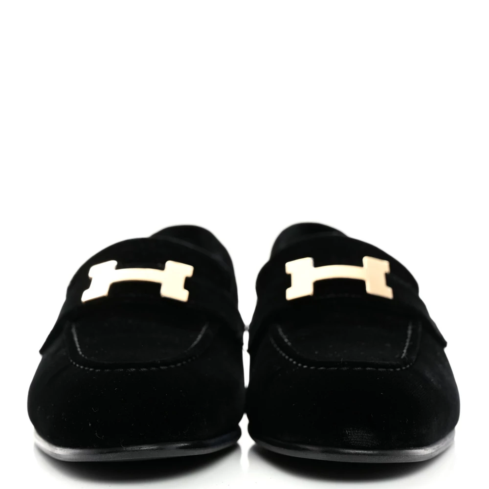 This Hermès Paris loafer in black velvet is a sophisticated and luxurious footwear choice. The plush velvet enhances its refined aesthetic, while the sleek silhouette adds timeless elegance. Designed for both comfort and style, this loafer is perfect for those who appreciate understated luxury with a hint of opulence.