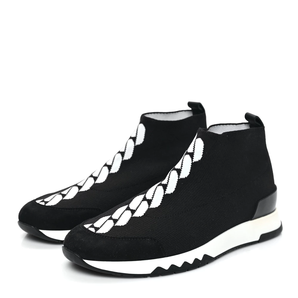 This Hermès Volo sneaker in black mesh is a sleek and modern footwear essential. The breathable mesh upper ensures comfort, while the streamlined silhouette keeps the look contemporary and versatile. Featuring a cushioned sole for all-day wear, it blends practicality with a fashion-forward aesthetic. Whether paired with streetwear or casual ensembles, this sneaker is a go-to choice for urban style.